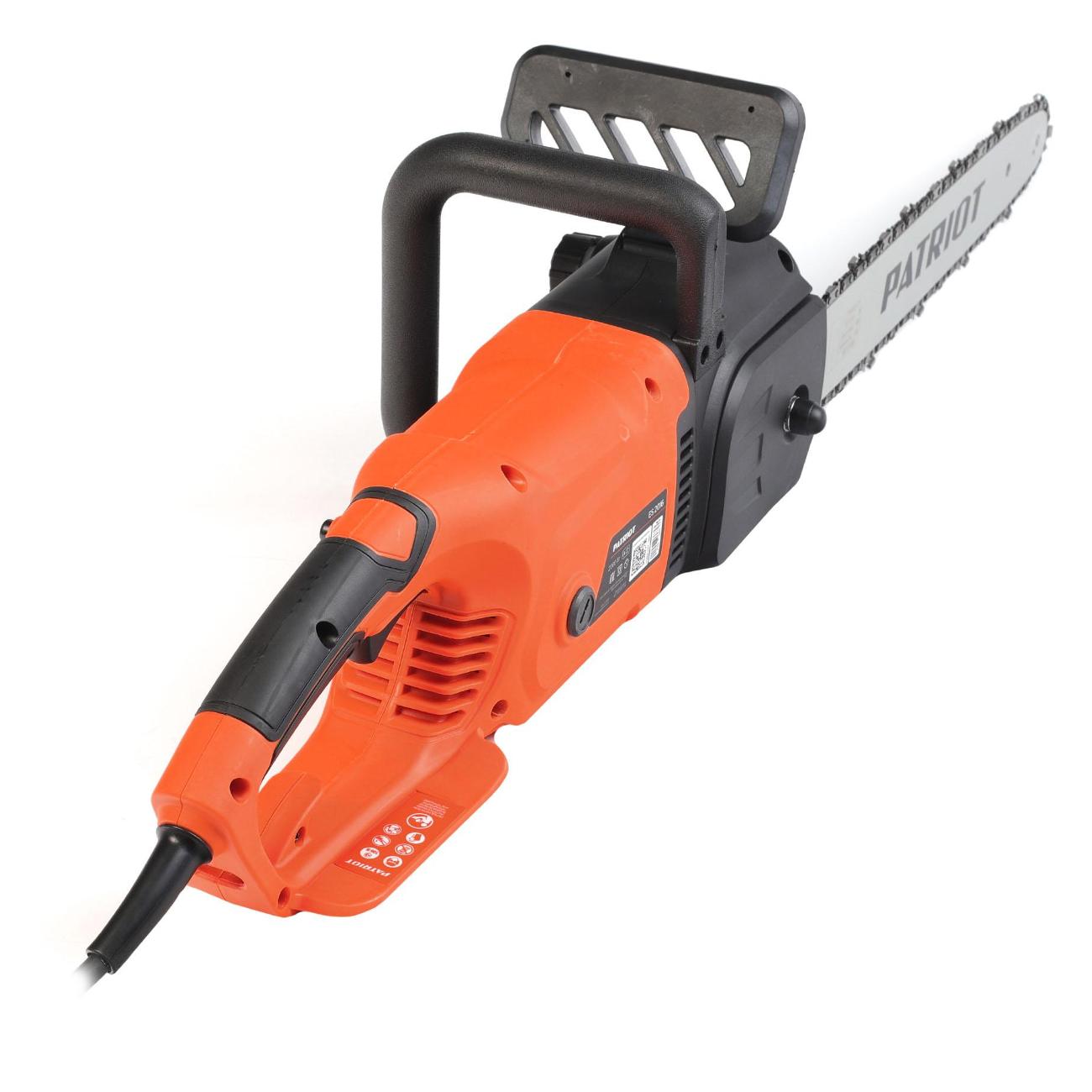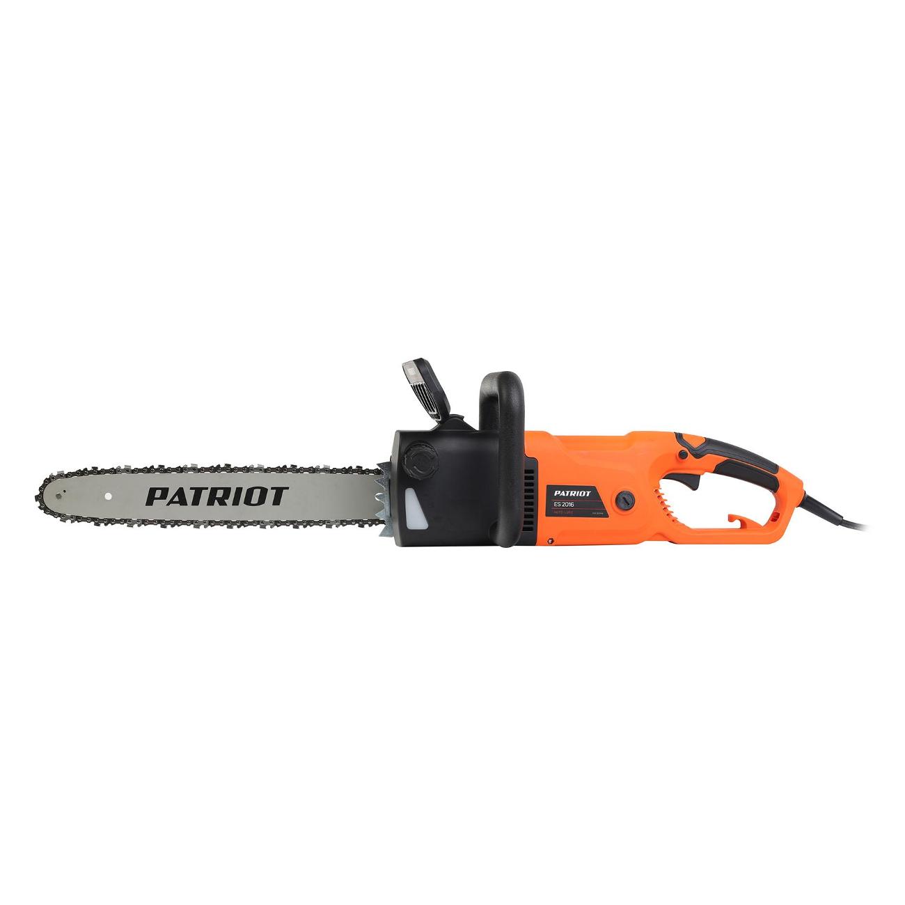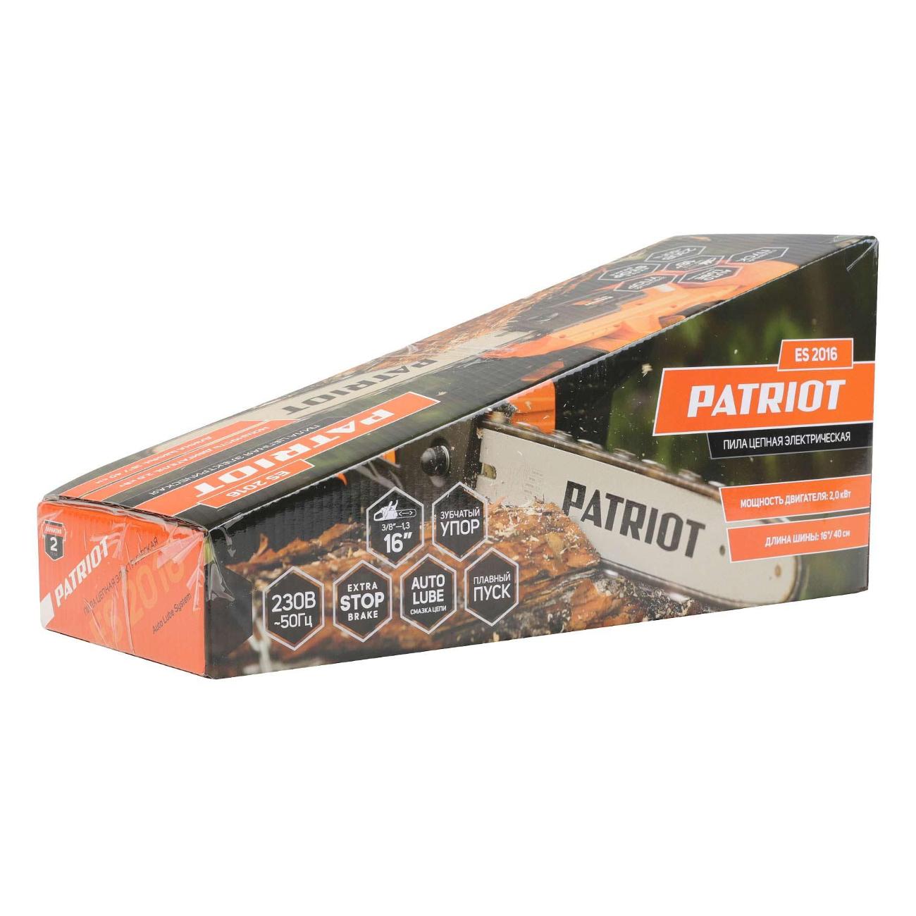 Бытовая цепная электропила Patriot ES 2016 — ручной инструмент, предназначенный для распиливания бревен, бруса, удаления сучков и других работ с деревом. Прибор с длиной рабочей части 40 см и сбалансированным центром тяжести работает от продольно расположенного двигателя мощностью 2000 Вт. Мотор приводит в движение пильную цепь из 57 звеньев, натянутую с помощью универсального ключа. Тормоз цепи обеспечивает электронную и механическую остановку двигателя.