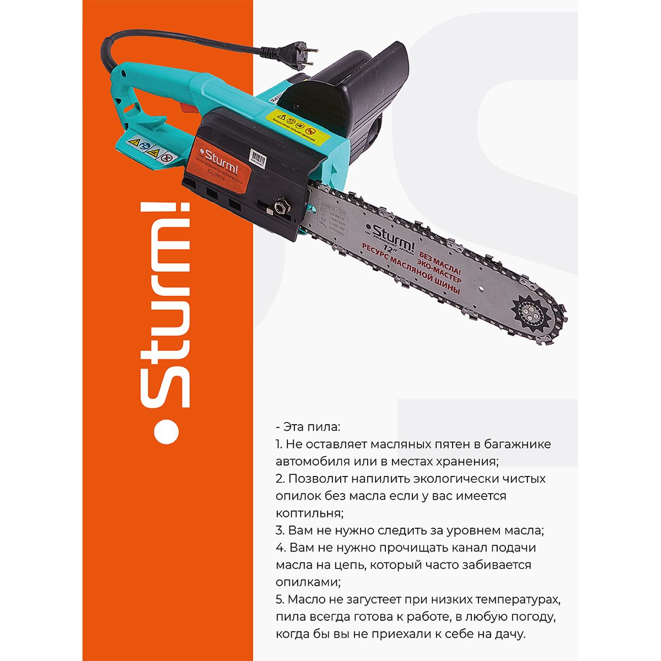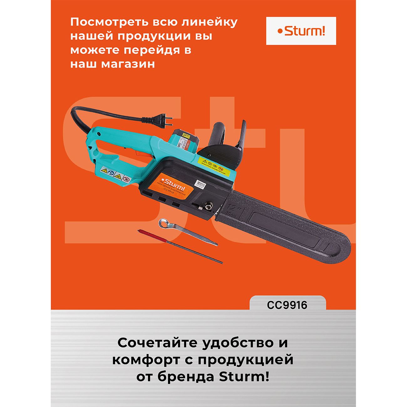 Вы можете купить Электропила цепная Sturm! CC9916 в магазинах М.Видео по доступной цене. Электропила цепная Sturm! CC9916: подробное описание, фото и отзывы реальных покупателей, характеристики, возможность скачать инструкции и подобрать аксессуары.