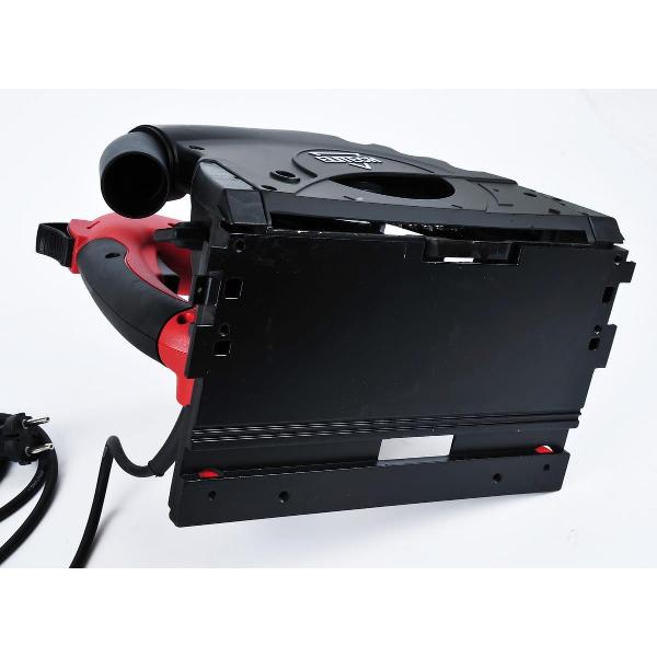 Пилу можно подключить к пылесосу, что позволит оперативно удалять строительный мусор — это облегчит поддержание рабочего пространства в чистом виде. Для безопасности инструмент оснащен защитой от случайного включения. Габаритные размеры — 23,5х26х34 см, вес — 4,8 кг.