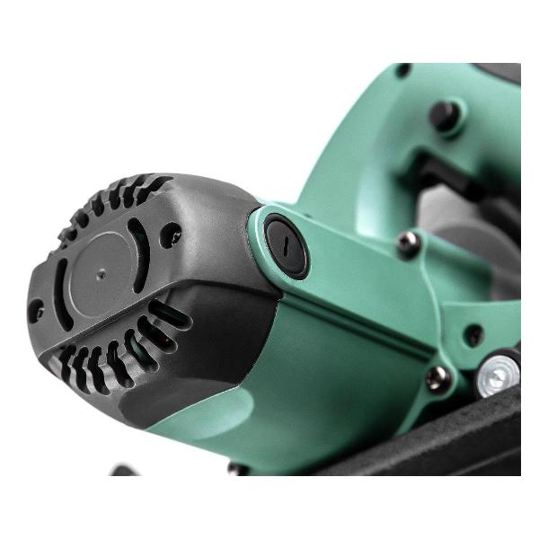 Электропила циркулярная Hammer CRP1800/210 зеленого цвета выполнена в пластиковом корпусе с удобной прорезиненной рукояткой, алюминиевой рабочей подошвой и металлическим защитным кожухом. Для более стабильного контроля во время работы пилой предусмотрена дополнительная рукоятка, для удаления стружки — отверстие для подключения пылесоса.