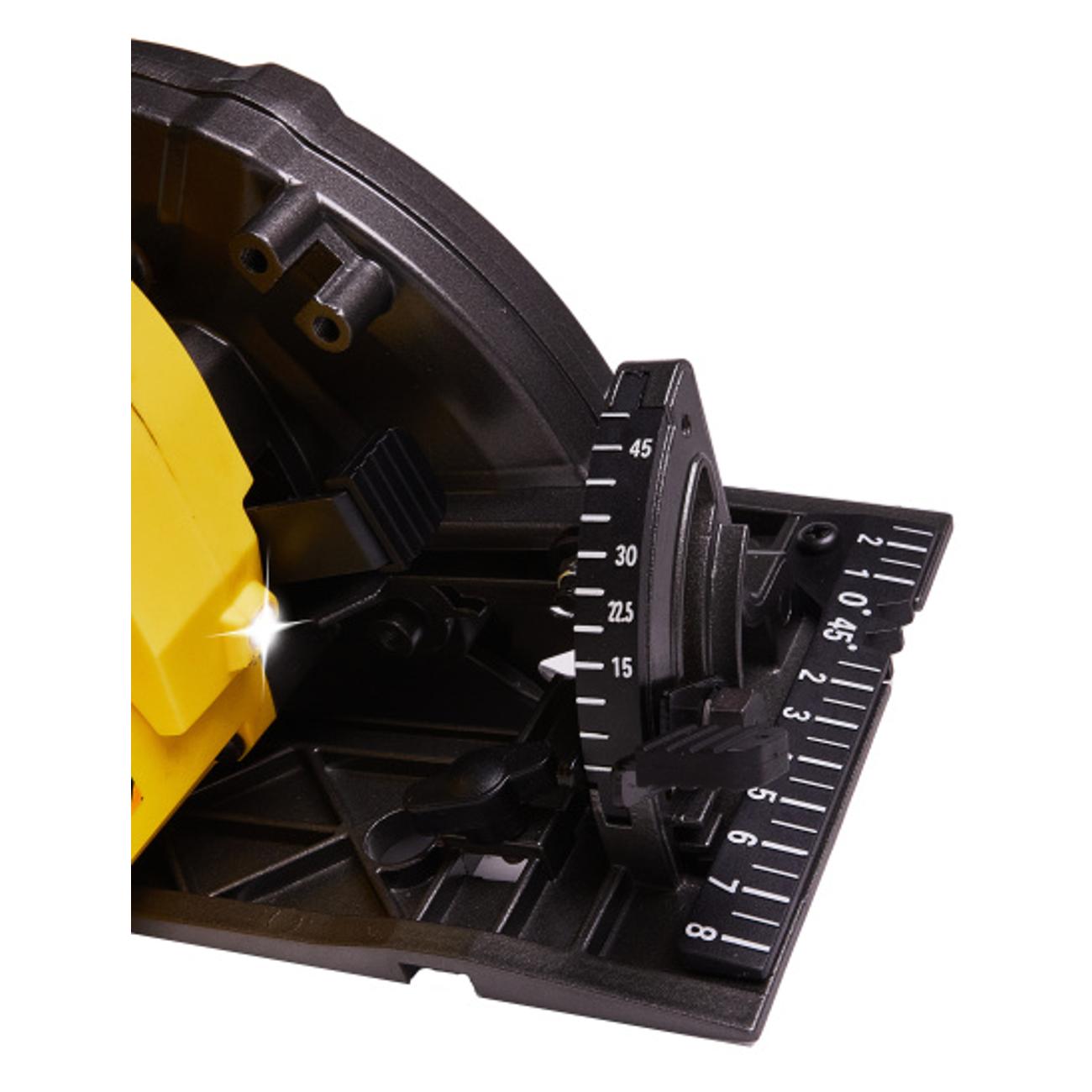 Устройство оборудовано бесщеточным двигателем. Корпус оснащается подсветкой. Максимальный угол наклона — 45°. Глубина пропила под углом 45° составляет 40 мм, по углом 90° — 57 мм.
