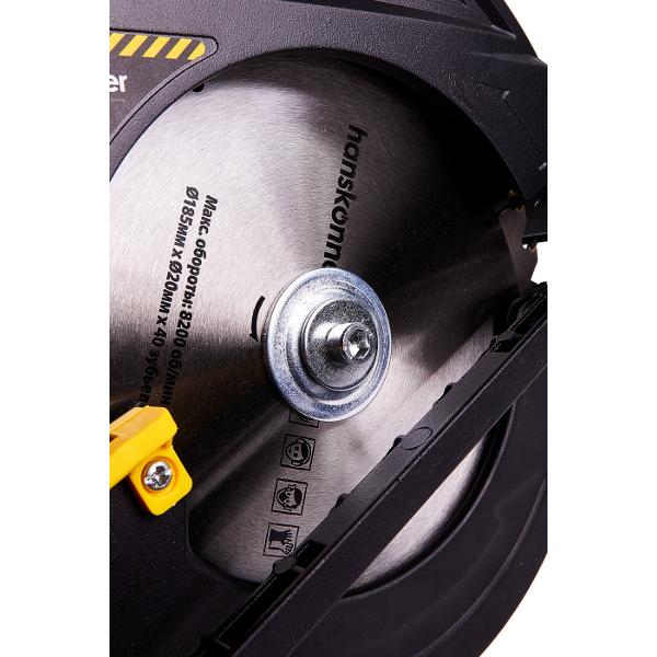 Циркуляционная электропила Hanskonner HCS51185 оснащена двигателем увеличенной мощности, который подходит для выполнения больших объемов работ без перегрева. Есть платформа из литого алюминия, устойчивая к деформации и механическим повреждениям. Рядом с дисковой пилой диаметром 185 мм расположена трубка для подключения пылесоса. Длина кабеля питания из морозостойкой резины составляет 4 м.
