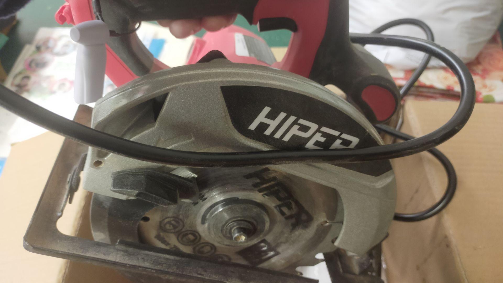 Диск пропитывает максимально доску 50 мм, если пилить на 90 градусов, если доска на несколько миллиметров толще, то диска не хватает, чтобы пропилить. А если надо отпилить на 45 градусов или под другим углом, то диска не хватает. Максимум можно пилить 30 миллиметровую доску под таким углом. Если дерево сильно мокрое, то иногда не хватает мощности, диск заедает. Но это для нас не сильно критично, так как у нас обычно не большой объем работ.