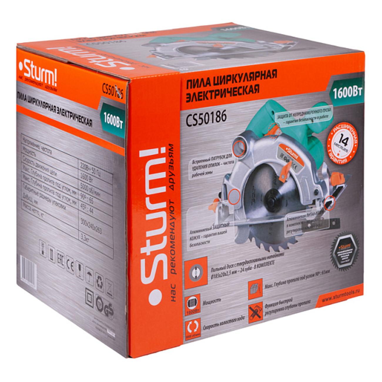 Вы можете купить Электропила циркулярная Sturm! CS50186 в магазинах М.Видео по доступной цене. Электропила циркулярная Sturm! CS50186: подробное описание, фото и отзывы реальных покупателей, характеристики, возможность скачать инструкции и подобрать аксессуары.