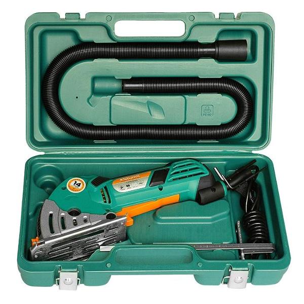 За счет регулируемой глубины реза можно легко настроить инструмент для выполнения любых задач. Уровень шума в процессе эксплуатации не превышает 80 дБ. Благодаря компактным размерам 24х12х42 см пила хорошо подходит для работы в ограниченных пространствах. Длина сетевого шнура — 2 м.