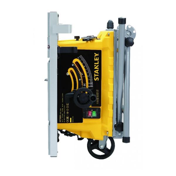 Стационарная электропила Stanley SST1800 — напольный станок для работы с заготовками, оснащенный двигателем мощностью 1,8 кВт с поддержкой блокировки при перегрузке и перегреве. Инструмент выполнен в пластиковом корпусе и оснащен металлическим рабочим столом из металла размером 640х640 мм. Пила поддерживает регулировку угла наклона на 45°, при котором глубина пропила составляет 50 мм. Глубина пропила под углом 90° — 90 мм. В нижней части корпуса установлены прочные колеса для легкой транспортировки станка. Для безопасного хранения и работы предусмотрен металлический защитный кожух.