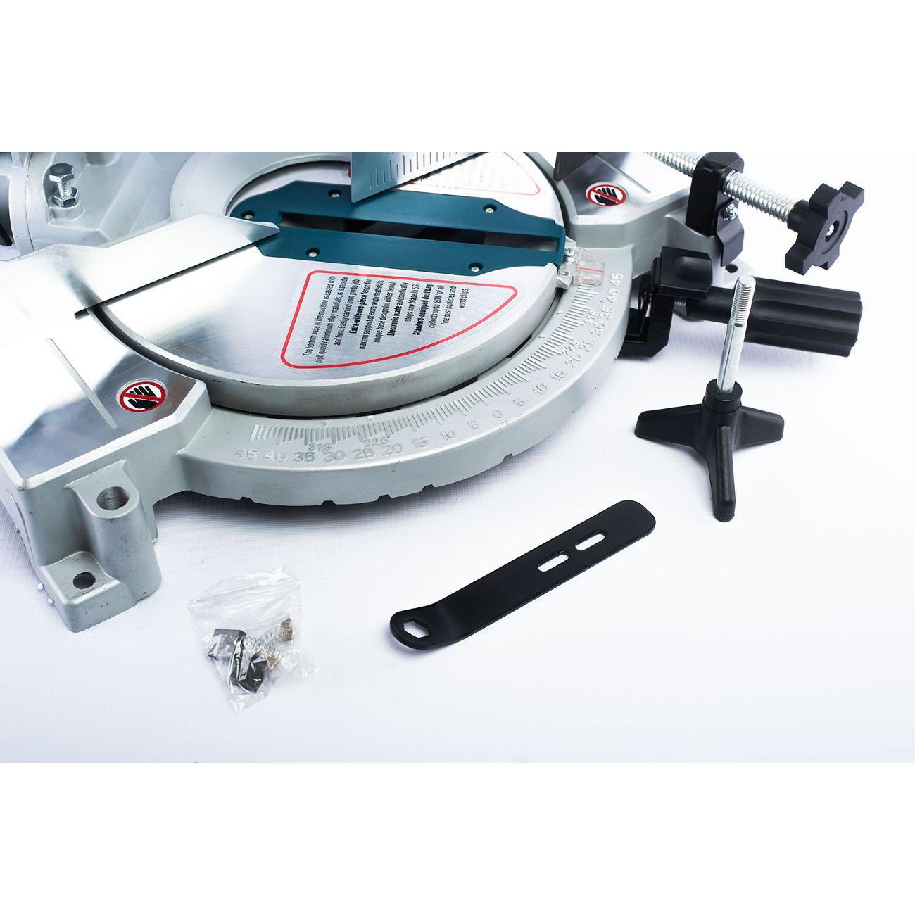 Пила рассчитана на работу с пильным диском диаметром 255 мм с диаметром посадочного отверстия 25,4 мм. Глубина реза в зависимости от угла варьируется от 42 мм до 72 мм, длина реза — от 100 мм до 140 мм. Мощность двигателя с возможностью регулировки скорости до 4600 об/мин — 1,8 кВт. В комплекте — пильный диск 120Т.