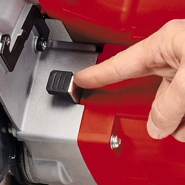 Блокиратор шпинделя поможет быстро и безопасно заменить диск. На корпус и рабочий элемент нанесены необходимые разметки. Режущее полотно закрыто металлическим кожухом. Устойчивость конструкции обеспечивают регулируемые ножки. Прибор оборудован пылесборником. Эта модель получает питание от электросети. Потребляемая мощность — 1800 Вт. Двигатель развивает скорость до 5000 оборотов в минуту. Весит устройство 14,8 кг.