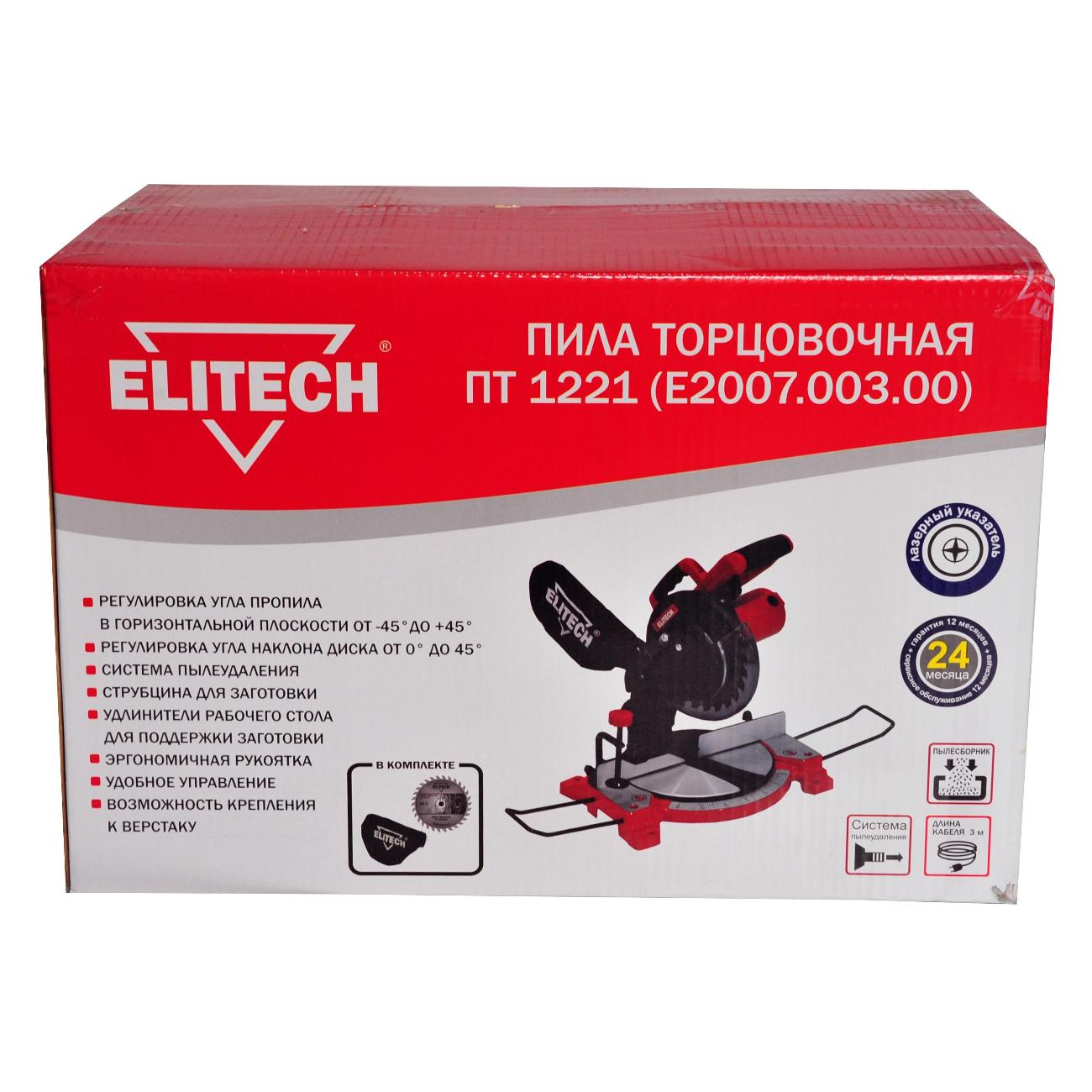 Торцовочная электропила Elitech ПТ 1221 (Е2007.003.00) предназначена для создания и обработки древесных заготовок. Угол наклона диска регулируется в пределах 0-45°. Максимальная глубина и ширина пропила составляет 60 мм и 120 мм (угол 90°). Для удобства инструмент можно закрепить на верстаке. Модель мощностью 1200 Вт работает с максимальным числом оборотов 5000 об/мин. Устройство с посадочным отверстием 30 мм совместимо с дисками размером 21 см. Шпиндель блокируется для удобной и безопасной замены оснастки.