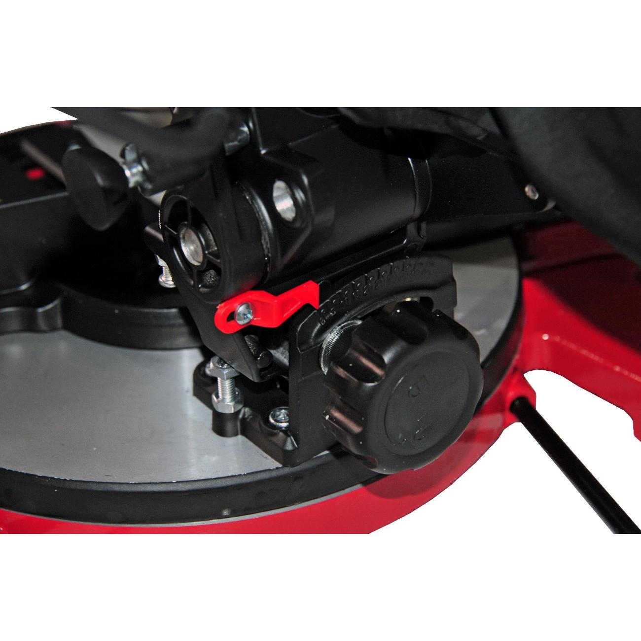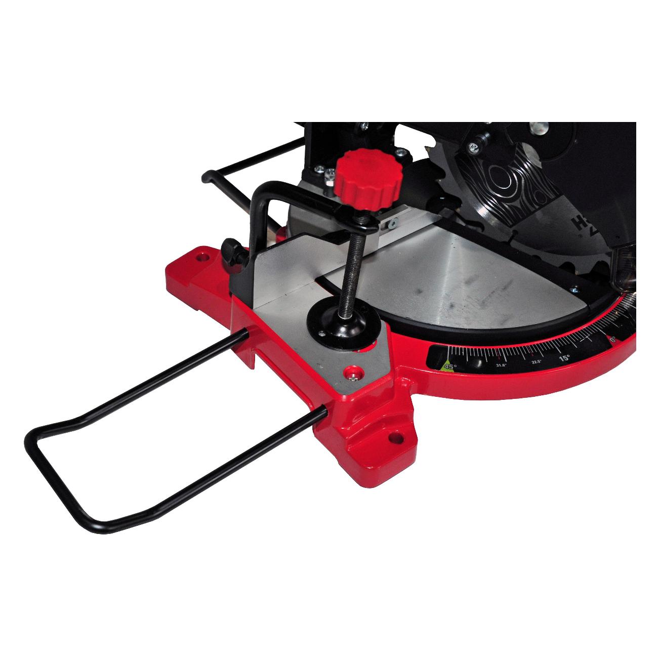 Электропила дополнена лазерным маркером, который повышает точность работы. Защитный кожух предотвращает разбрасывание отходов. Благодаря наличию пылесборника и патрубка для подключения пылесоса рабочее место всегда будет оставаться чистым. Двигатель с тормозом отличается долгим эксплуатационным сроком. Прибор питается от сети через шнур длиной 3 м. Модель защищена от случайного включения. Для поддержки заготовок нестандартного размера предусмотрены удлинители.