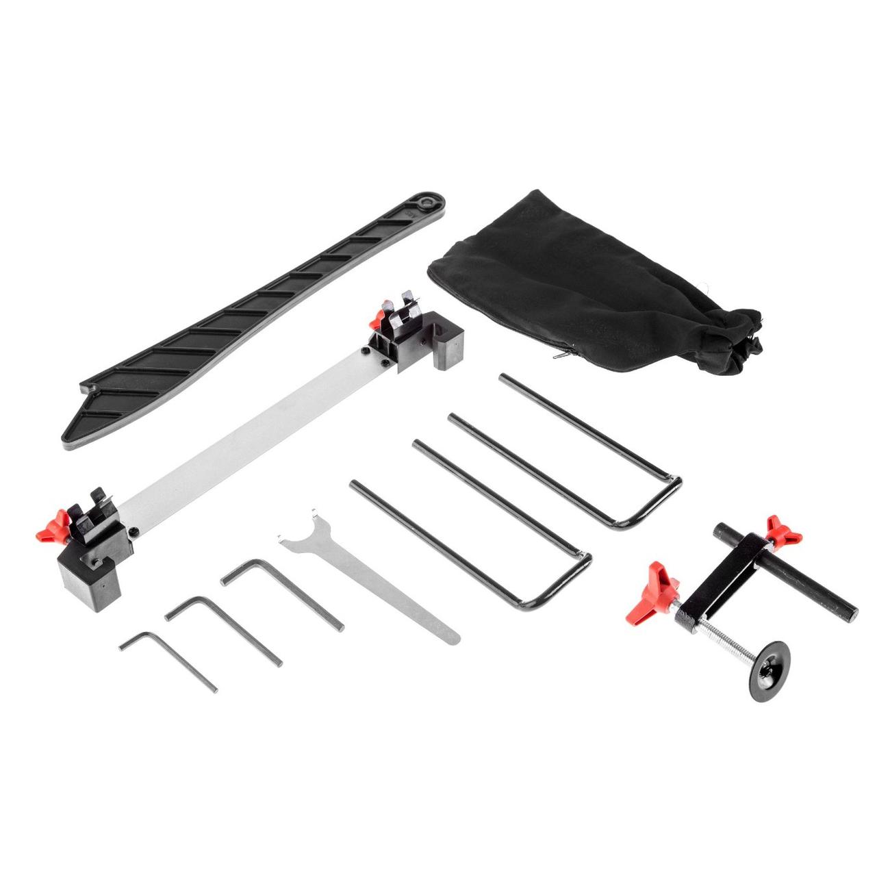 Ширина пропила под углом 90° достигает 12 см, глубина — до 5,5 см. Диаметр посадочного отверстия составляет 3 см. Максимальная скорость вращения рабочей поверхности — 4500 об/мин. Корпус оснащается патрубком для подключения пылесоса.