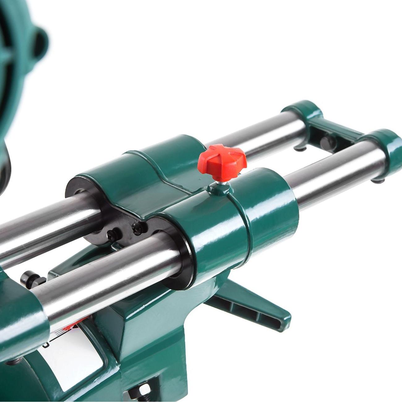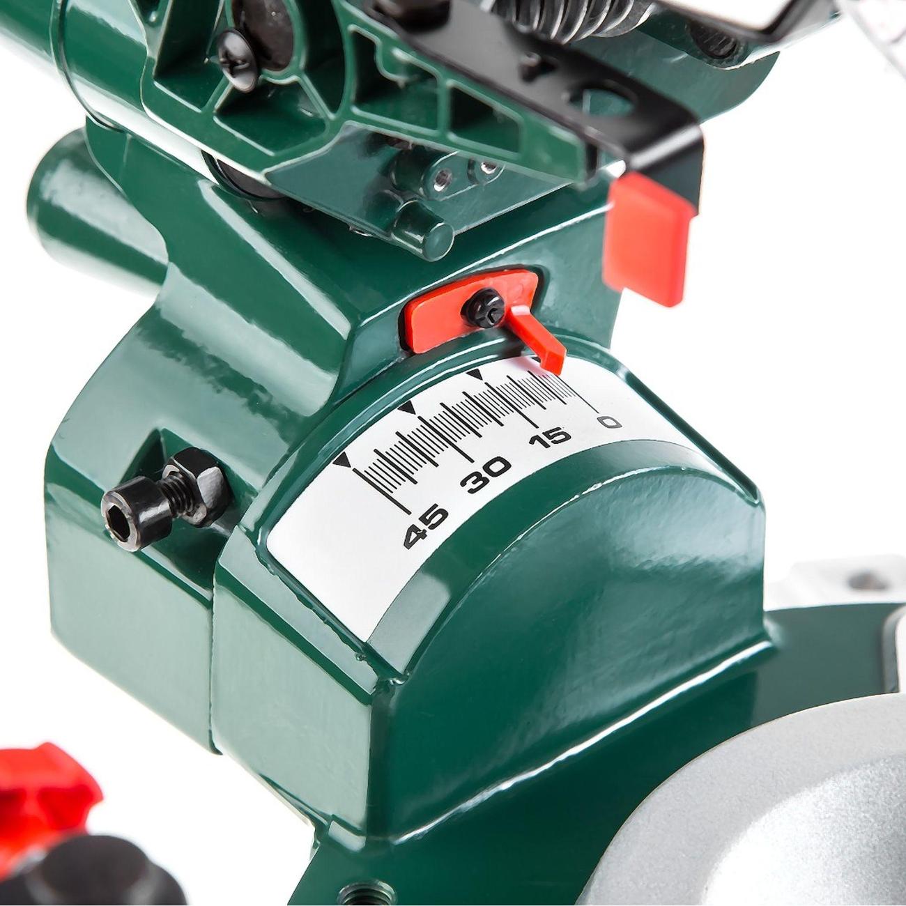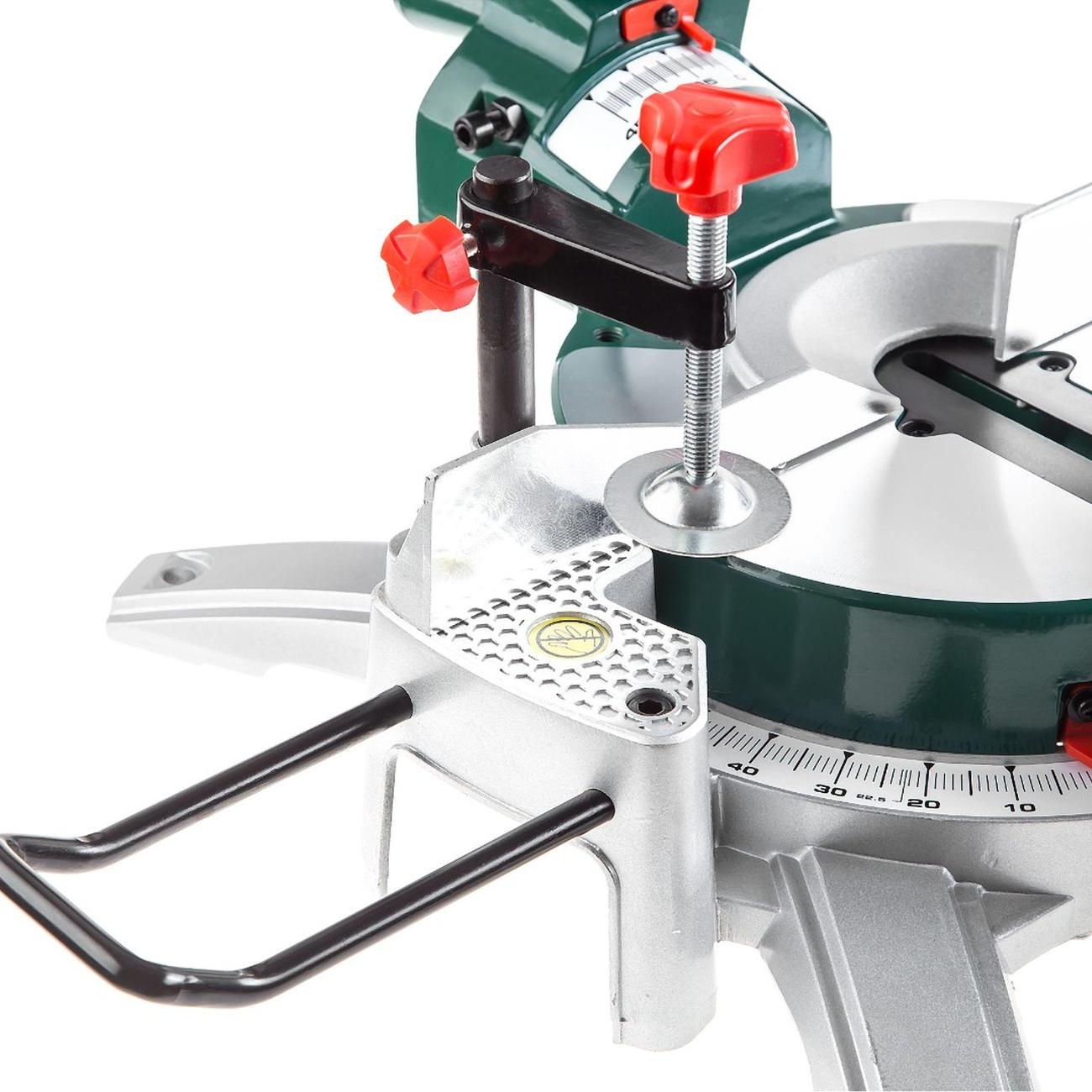 Заготовка фиксируется специальными зажимами, что обеспечивает устойчивое положение во время работы. Можно производить разметку при распиловке, менять ширину и угол пропила. Прорезиненная рукоять не проскальзывает в руках. В пылесборник собирается мусор, что дает возможность держать в порядке рабочее место. К патрубку можно подключать пылесос.