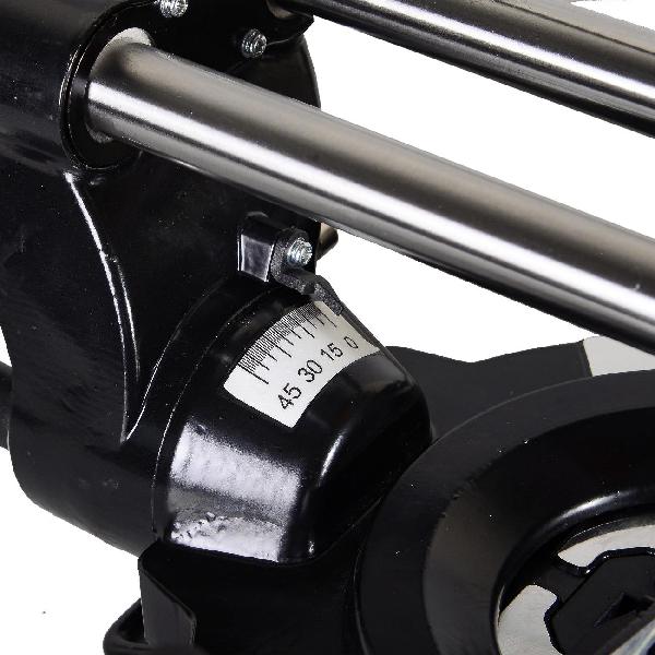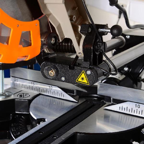 В модели используется пильный диск диаметром 25,5 см с посадочным отверстием 3 см. Максимальная ширина пропила при наклоне на 90° составляет 34 см. Насадки меняются с помощью ключа, во время замены можно заблокировать шпиндель. Инструмент укомплектован параллельной направляющей.