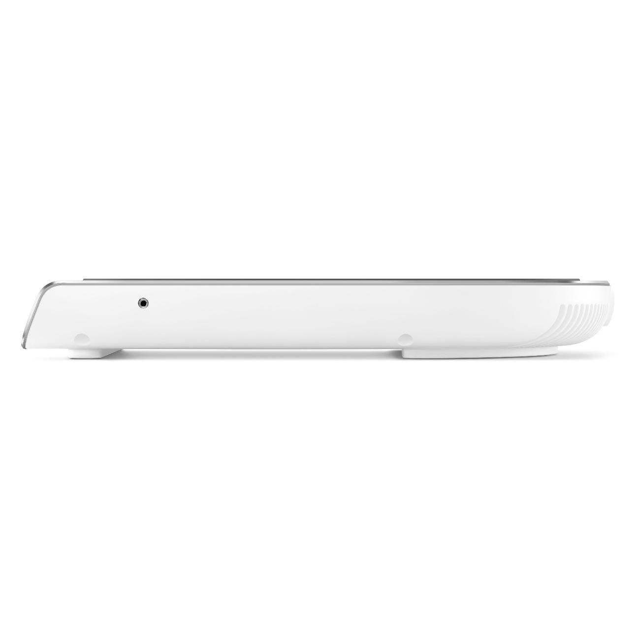 Источником питания служит стандартная электросеть 220 В. Для подсоединения к розетке задействуется кабель длиной 1 м. Варочная поверхность изготовлена из стеклокерамики, корпус — из алюминия и пластика белого и черного матового цвета. Основание дополнено прорезиненными ножками. Модель габаритами 5,4х31,5х41,25 см весит 3,3 кг.