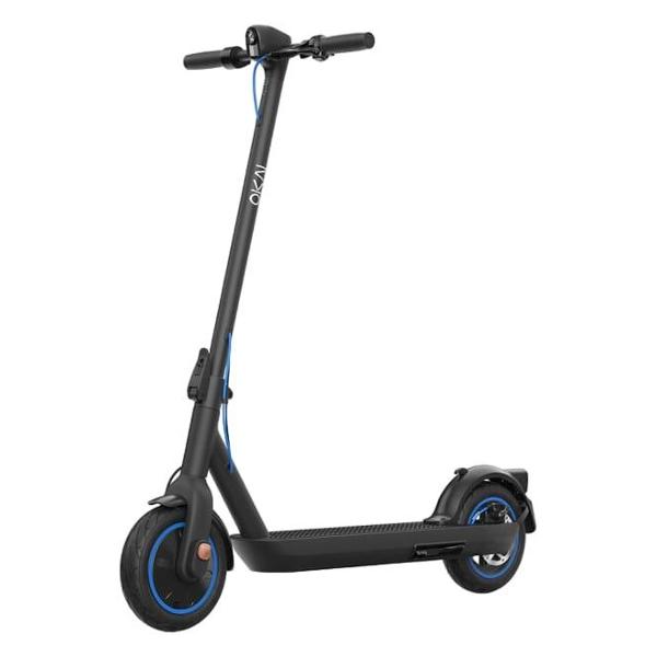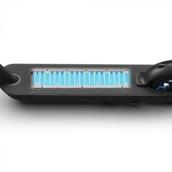 Электросамокат Ninebot by Segway ES520В черного цвета с синими элементами обладает габаритами 119,4х118,1х51,4 см и массой 16,9 кг. Питание осуществляется от аккумулятора емкостью 13400 мА*ч и номинальным напряжением 36 В. В комплекте поставляется зарядное устройство. Мощность двигателя — до 300 Вт. У модели передний привод колес. Встроен модуль Bluetooth. Установлена комбинированная тормозная система с дисковым и электронным тормозами. На лицевой стороне размещаются индикаторы заряда аккумулятора, движения, зарядки, также LCD-дисплей.