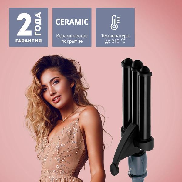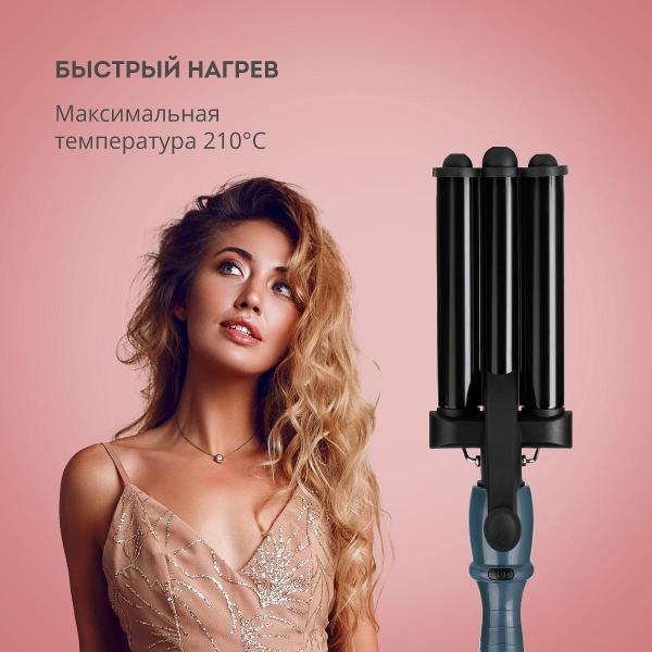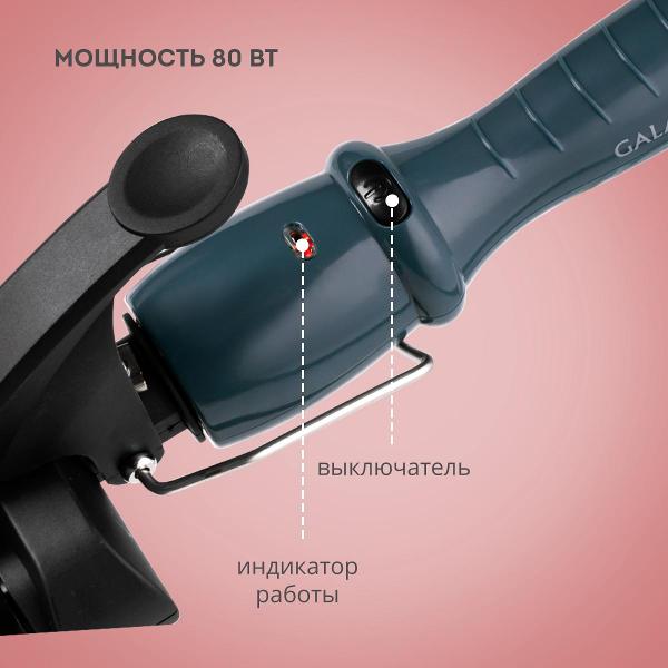 Электрощипцы Galaxy Line GL4668 подходят для создания крупных локонов и эффекта волны на волосах. За нагрев отвечает пластина диаметром 22 м с керамическим покрытием. Максимальная температура составляет 210°С. Прибор нагревается менее чем за 1 мин и поддерживает быстры нагрев. Корпус выполнен из EVA и дополнен термоизолированным наконечником с вращающимся сетевым кабелем длиной 1,9 м. Мощность аппарата — 80 Вт.
