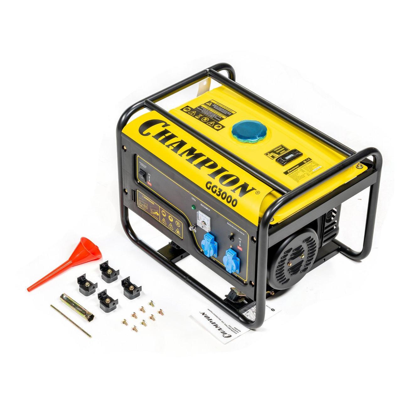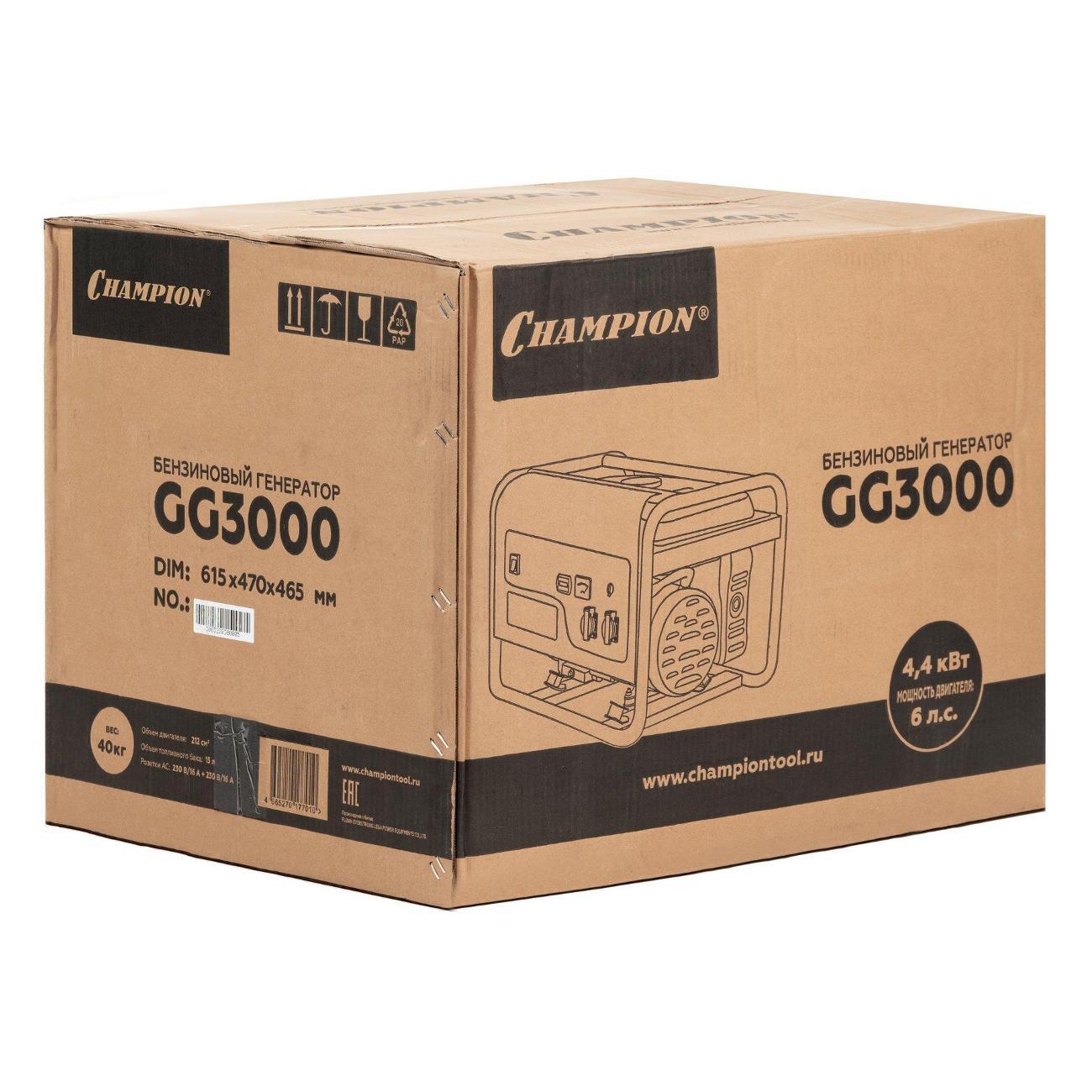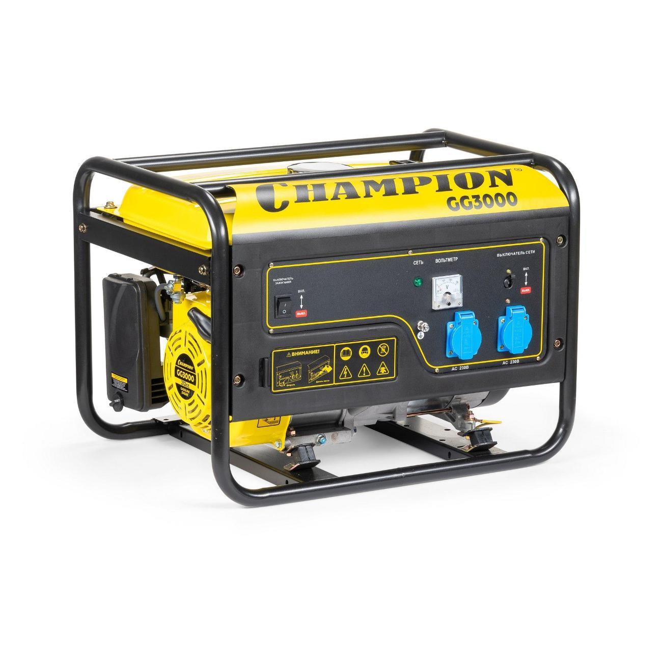 Вы можете купить Электростанция бензиновая Champion GG3000 2,3/2,5кВт 6лс 15л в магазинах М.Видео по доступной цене. Электростанция бензиновая Champion GG3000 2,3/2,5кВт 6лс 15л: подробное описание, фото и отзывы реальных покупателей, характеристики, возможность скачать инструкции и подобрать аксессуары.