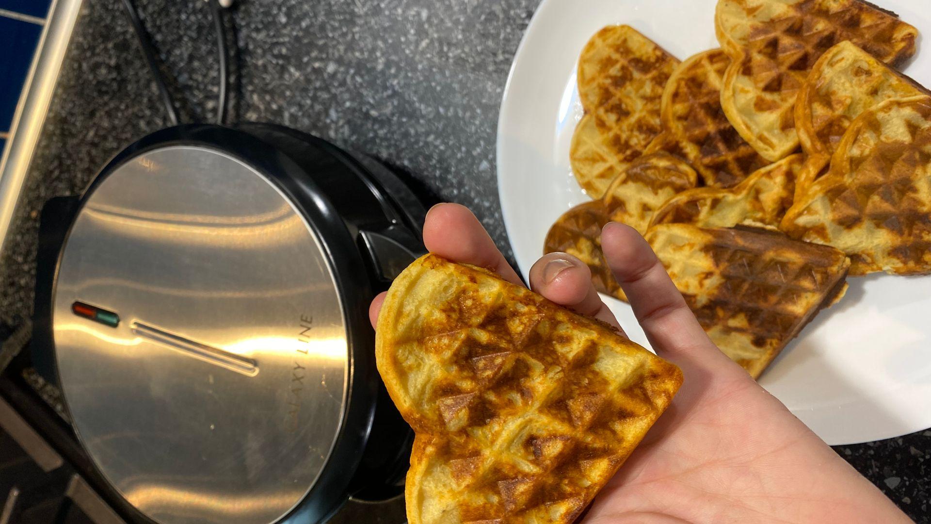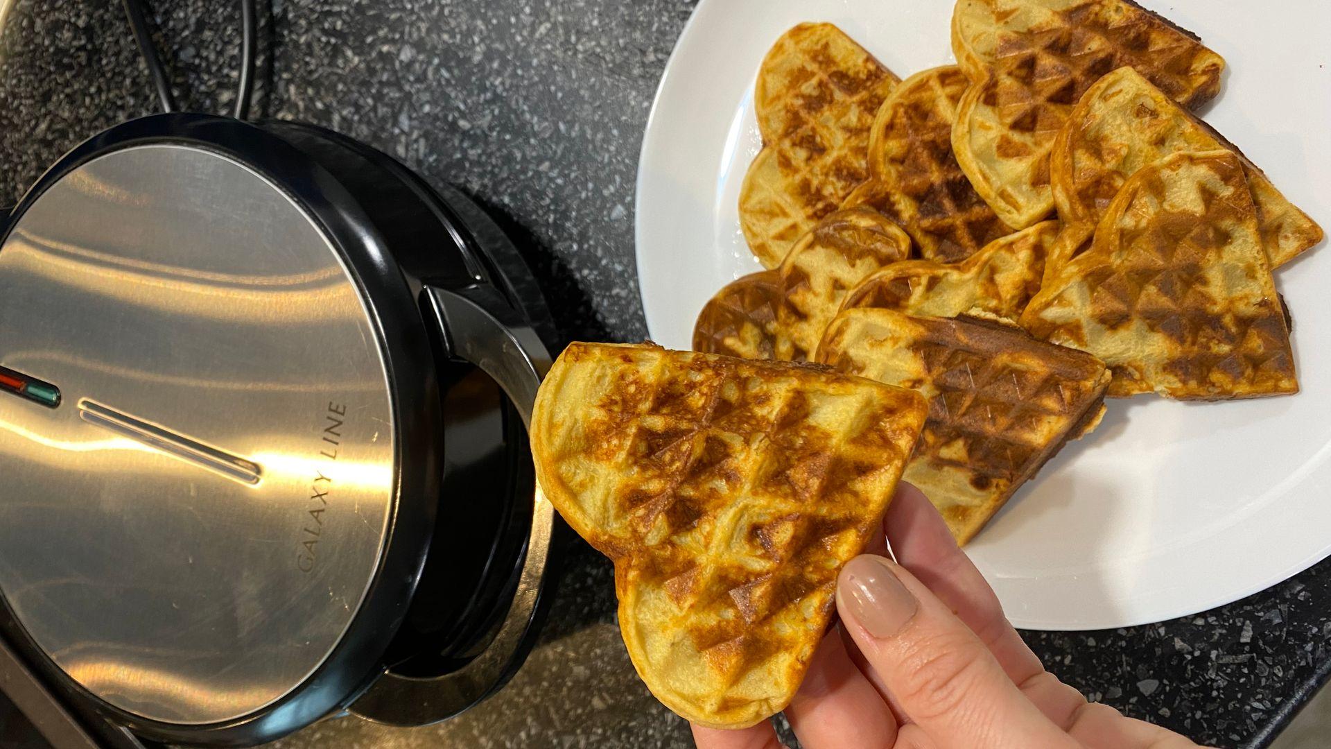 Качеством довольна, печет быстро - 2-3 минутки и 6 вафель в виде сердечек готовы. Пекла творожные вафли, картофельные, классические, чечевичные. На фото творожные с бананом.) Поверхность протерла бумажной салфеткой и все чисто )), ручка удобная - не нагревается. Покупкой довольна, теперь вместо привычных завтраков буду радовать семью вот такими вкусными из вафель с различными начинками).