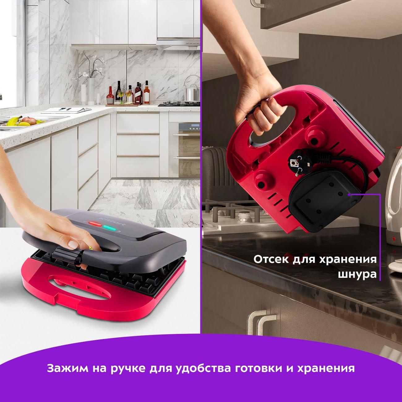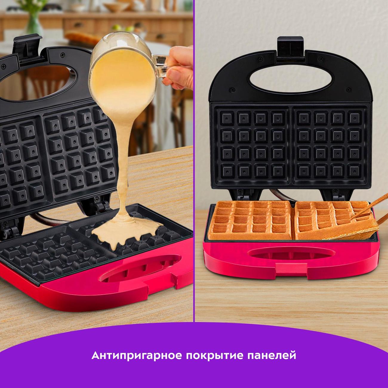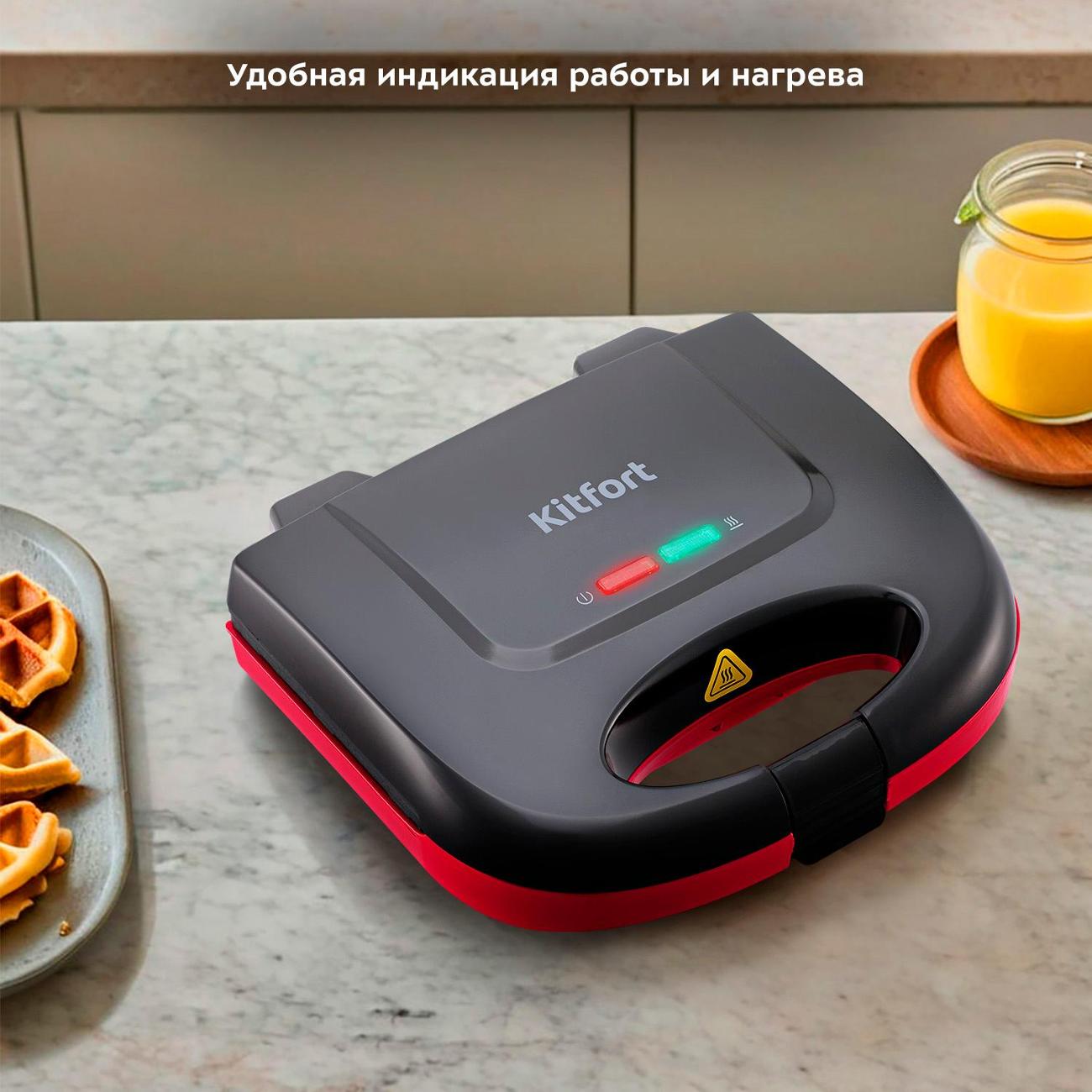 Электровафельница Kitfort КТ-3659 мощностью 750 Вт позволяет приготовить два изделия одновременно.