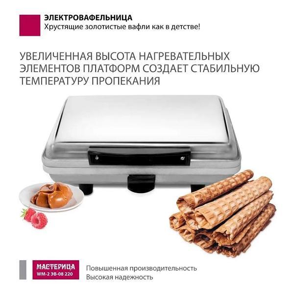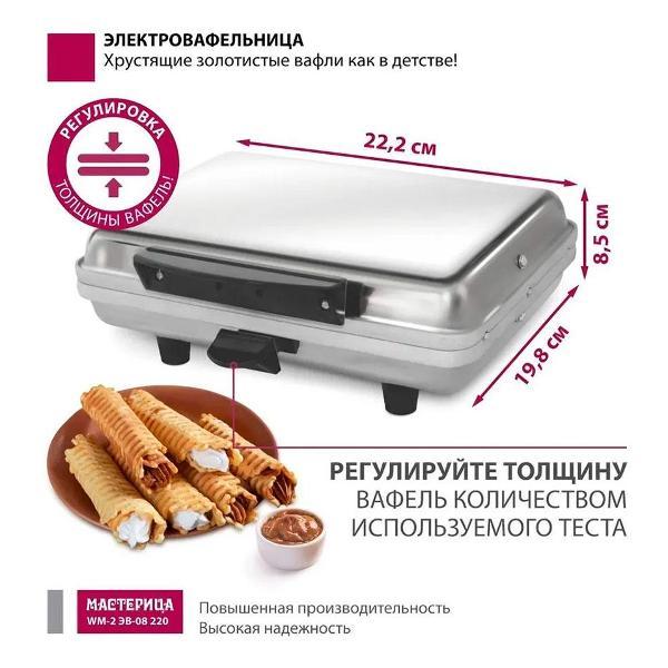 Вы можете купить Электровафельница Мастерица WM-2 ЭВ-08/220 Silver в магазинах М.Видео по доступной цене. Электровафельница Мастерица WM-2 ЭВ-08/220 Silver: подробное описание, фото и отзывы реальных покупателей, характеристики, возможность скачать инструкции и подобрать аксессуары.