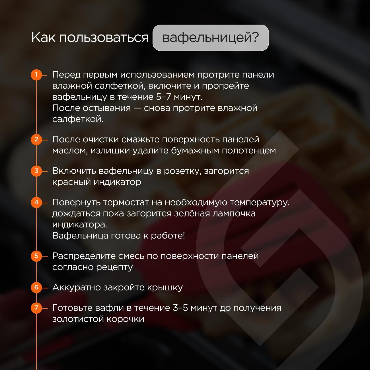 Мощность 1200 Вт — это не просто цифра. Это гарантия того, что ваши вафли будут готовы в считанные минуты. Больше не нужно ждать — идеальный завтрак или десерт всегда под рукой.
