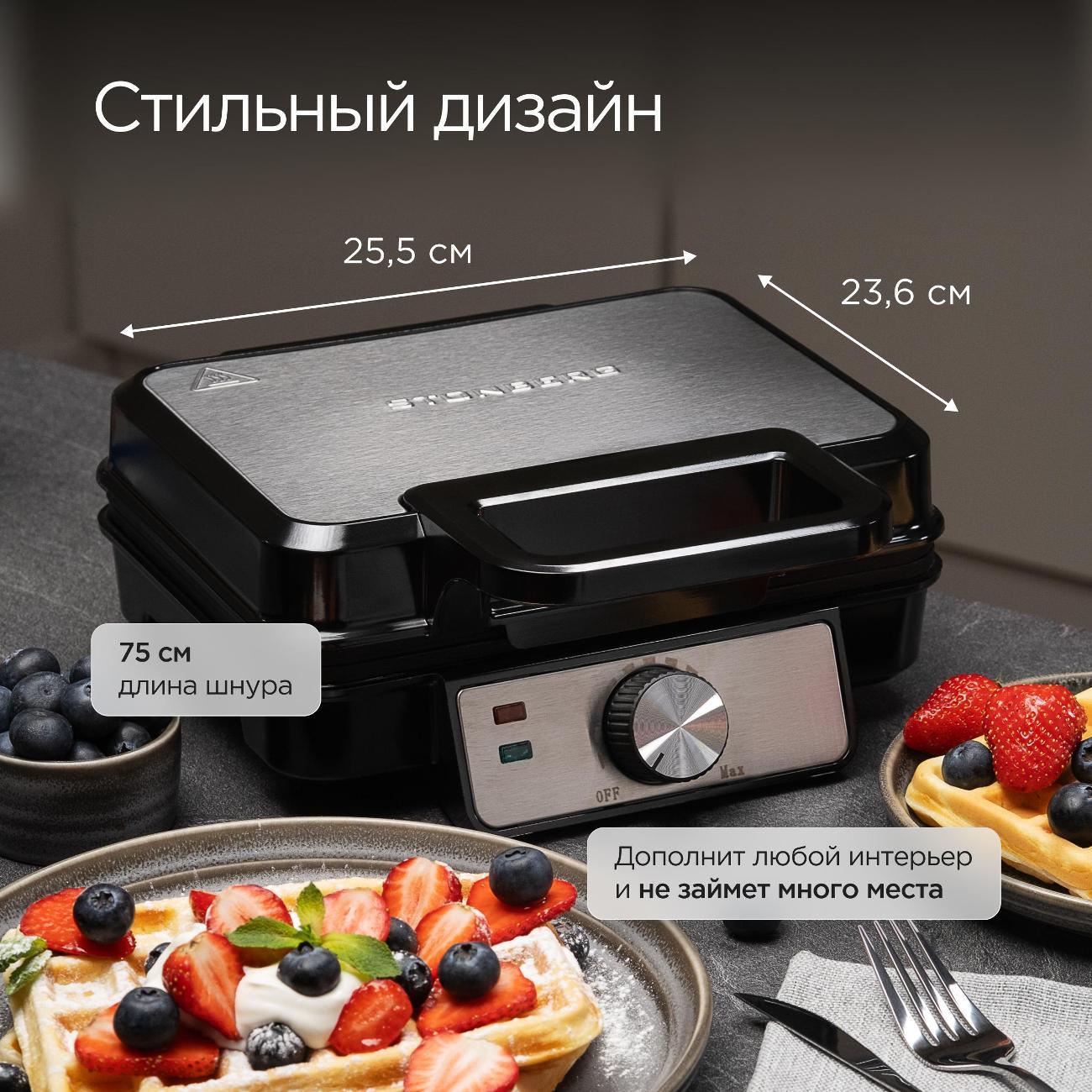 Представьте себе утро, когда аромат свежеиспеченных вафель будит дом, а вы, не спеша, наслаждаетесь моментом. С электрической вафельницей Stonberg Special W-102SL это не мечта, а реальность. Забудьте о скучных завтраках и походах в кафе — теперь вкуснейшие вафли с хрустящей корочкой и нежной сердцевиной вы готовите сами, легко и быстро, прямо у себя на кухне.