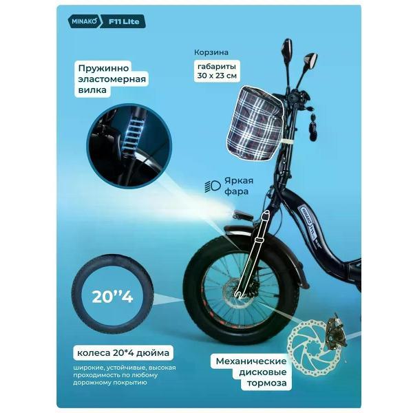 Вы можете купить Электровелосипед Minako F10/11 в магазинах М.Видео по доступной цене. Электровелосипед Minako F10/11: подробное описание, фото и отзывы реальных покупателей, характеристики, возможность скачать инструкции и подобрать аксессуары.