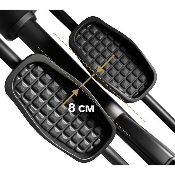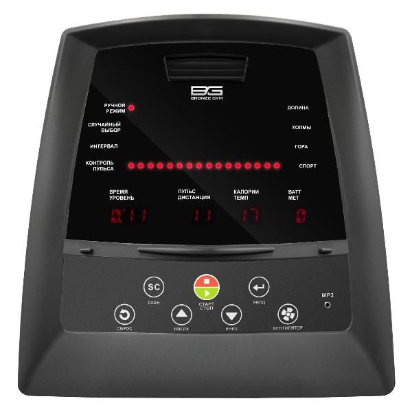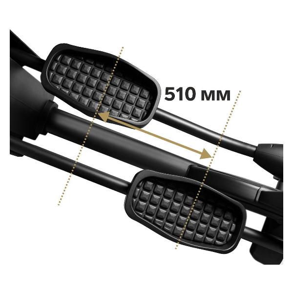 Эллипсоид Bronze Gym E1100M черного цвета предназначен для профессионального использования. Инерционный вес маховика составляет 25 кг. Тренажер рассчитан на спортсмена массой до 180 кг. Пространство между педалями составляет 80 мм, длина шага — 510 мм. Педали у эллипсоида нескользящие, увеличенного размера.