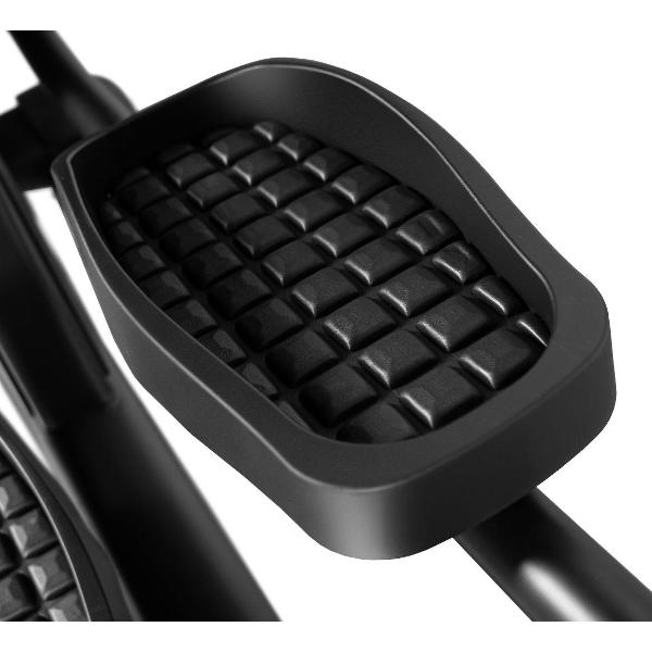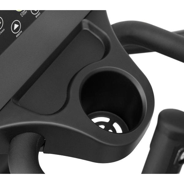 У тренажера 24 уровня нагрузки и девять программ работы. На фиксированных поручнях располагаются быстрые клавиши регулировки нагрузки. На передней стойке находится лоток для бутылки с водой и аксессуаров.