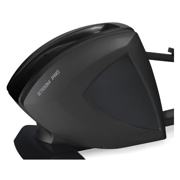 Эллипсоид оснащен одним основным и четырьмя дополнительными LED-дисплеями с подсветкой. Отображаются пройденная дистанция, уровень нагрузки, объем израсходованных калорий, частота сердечных сокращений, затраченное время и другие необходимые показатели. Система нагружения у эллипсоида электромагнитная, с генератором. Отслеживание показателей пульса осуществляется с помощью датчиков на поручнях. Тренажер оснащен динамиками. Присутствует встроенный вентилятор. Рама эллипсоида высокопрочная, с двухслойной покраской.