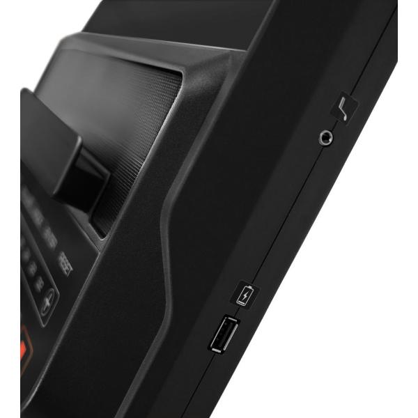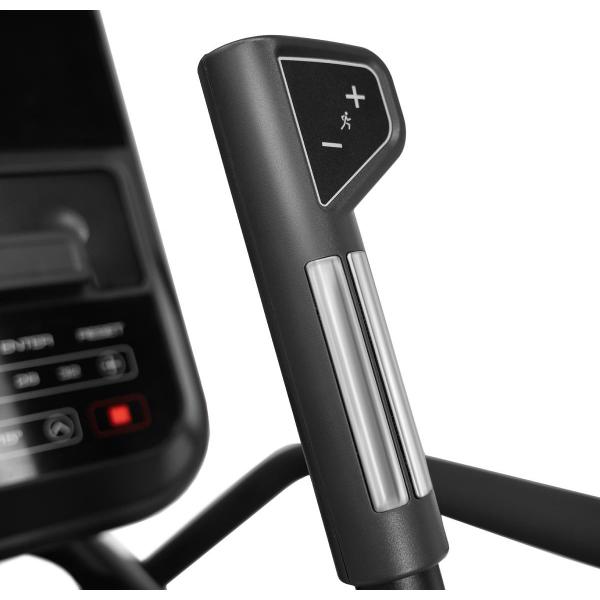 За управление отвечает встроенный компьютер с LED-дисплеем, сенсорные датчики пульса и кнопки быстрого доступа интегрированы в рукояти. Нагрузка регулируется на 32 уровнях, в прибор заложены 20 тренировочных программ. На экране отображается информация о времени занятия, выбранной скорости, пройденной дистанции, пульсе и потраченных калориях.