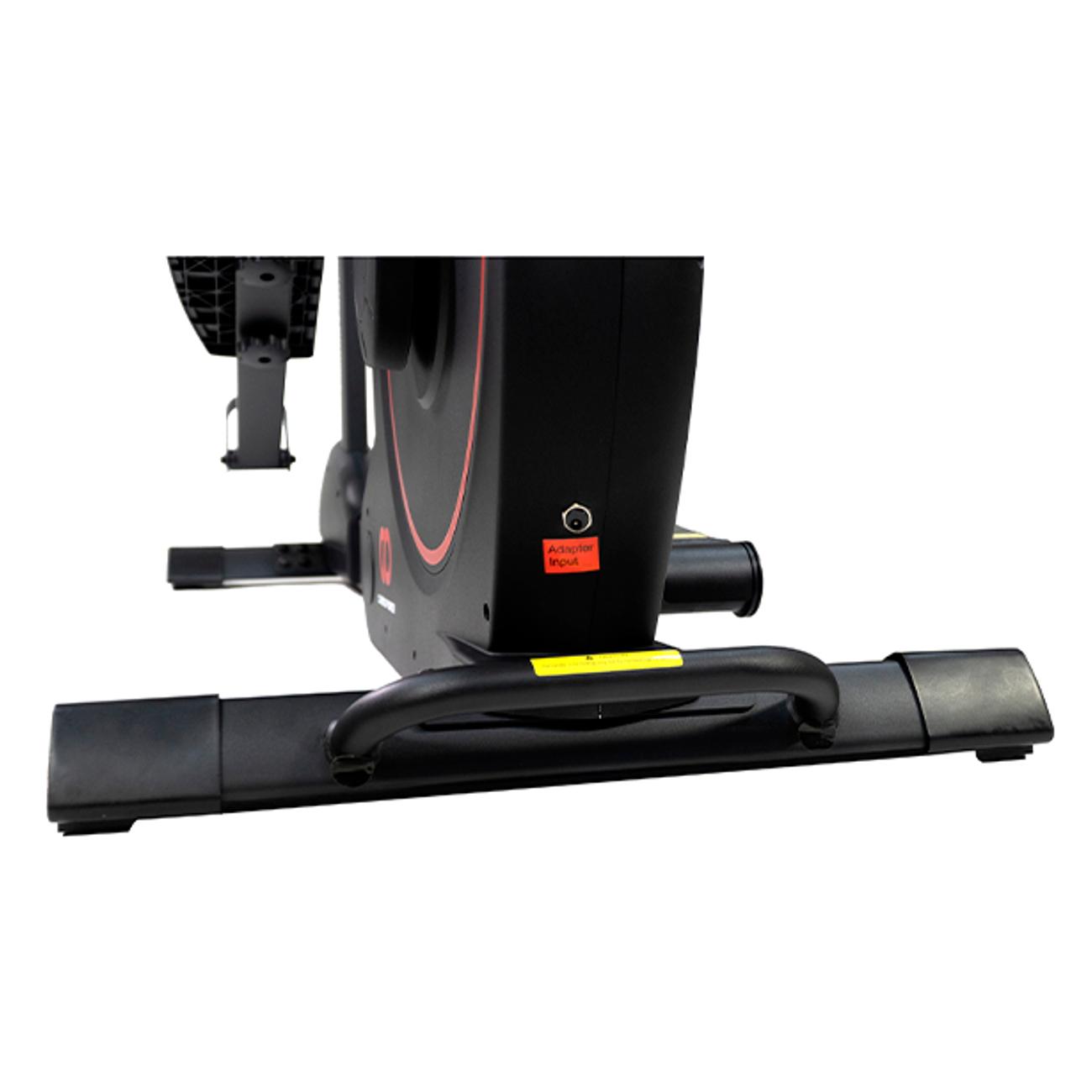 На корпусе тренажера установлен LCD-дисплей диагональю 5,15 дюйма, который отображает нужную информацию: дистанцию пройденного пути, тренировочное время, скорость ходьбы и пульс, для измерения которого в поручни установлены специальные датчики. Предусмотрен держатель для бутылки, прорезиненные ножки, компенсаторы неровности пола и подставка под девайсы. Для удобного хранения корпус можно сложить.
