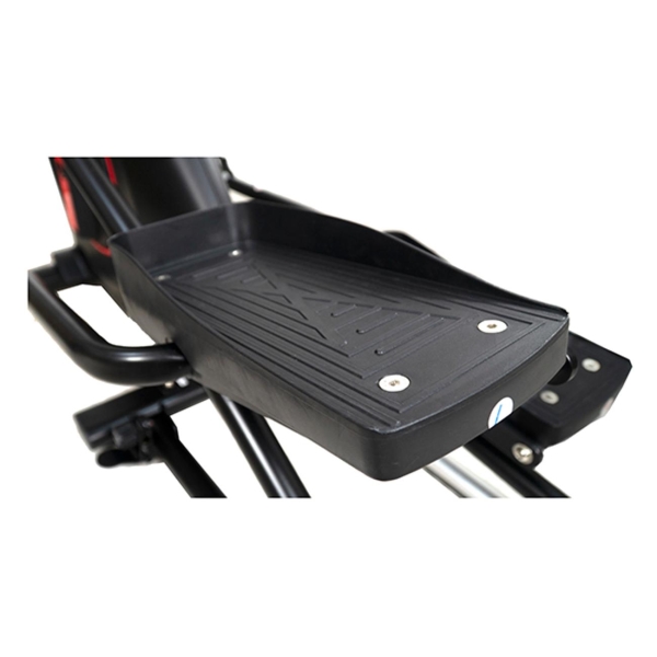 Маховик весом 22 кг гарантирует плавность движений, без возникновения остановок и рывков. Тренажер оборудован 12 автоматическими программами, что дает возможность выбирать наиболее подходящий вариант в зависимости от степени физической подготовки. Педали удобной формы с прорезиненной поверхностью расположены под правильным углом, что исключает неправильную нагрузку на сухожилия. Эллипсоид оборудован цветным 6" ЖК-дисплеем, на котором отображаются все основные данные: пульс, расход калорий, скорость и дистанция. В комплекте поставляются держатель для бутылки, подставка для аксессуаров.