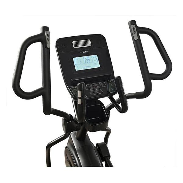 Синхронизация с устройствами осуществляется по Bluetooth. Вся информация отображается на дисплее (время тренировки, пульс, расход калорий, скорость и дистанция). Габаритные размеры эллипсоида — 170х78х168 см, вес — 113 кг. В комплект входят держатель для бутылки, комплект ключей для сборки, подставка для аксессуаров.