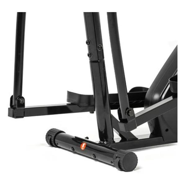 Маховик весом 4 кг расположен в задней части конструкции. Предусмотрены большие удобные педали с длиной шага 28 см с бортиком по краям. Для аксессуаров встроена подставка. Компенсаторы неровностей пола позволяют стабилизировать положение при недостаточно ровном покрытии. Для сборки в комплекте идет набор ключей. Небольшой вес 24,2 кг и транспортировочные ролики позволяют легко перемещать тренажер с места на место. Габаритные размеры — 156х60х110 см.