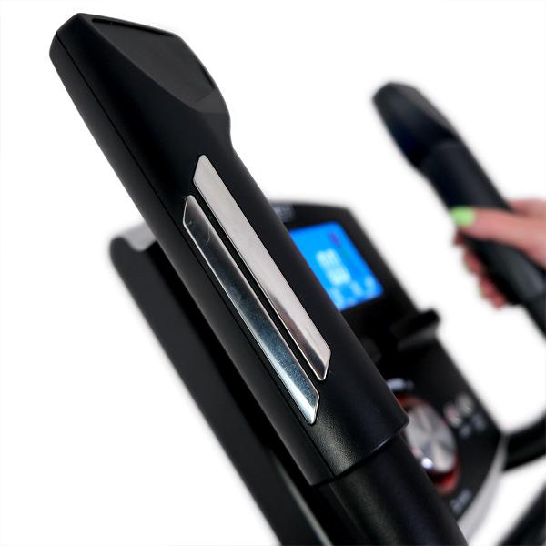Для управления используются кнопки и LCD-дисплей на лицевой части, который отображает показания пульса (с помощью датчиков на поручнях), время тренировки, скорость ходьбы и расстояние.