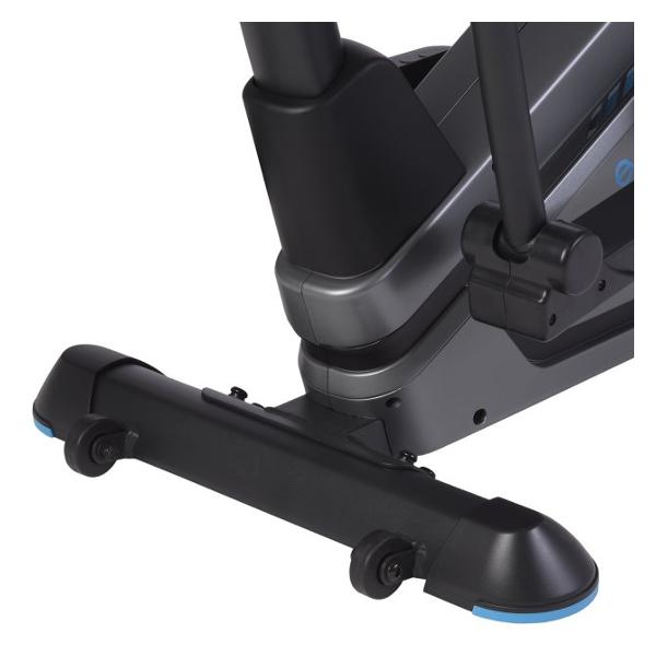 Эллипсоид Evo Fitness Epic в комбинированном корпусе черного, серого и синего цветов обладает габаритами 161х68х128 см. В комплекте поставляется набор ключей для сборки. Масса маховика — 10 кг, полный вес устройства составляет 41 кг. Корпус оснащается компенсаторами для пола, транспортировочными роликами, также подставкой для девайсов. На лицевой стороне размещаются индикаторы времени тренировки, выбранной скорости, дистанции, пульса, расхода калорий, цифровой дисплей.