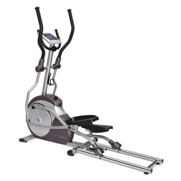 Эллипсоид Oxygen EX-35FD HRC+ в сером корпусе рассчитан на пользователя массой до 150 кг. У него электромагнитная система нагружения, длина шага составляет 40 см. У тренажера 32 уровня нагрузки и 19 программ тренировок. Есть цифровой дисплей с индикацией времени тренировки, пройденного расстояния, израсходованных калорий, частоты сердечных сокращений. Тренажер подключается к электросети. На корпусе есть транспортировочные колесики, компенсаторы неровностей пола, держатель для бутылки. В комплект входит набор ключей для сборки.