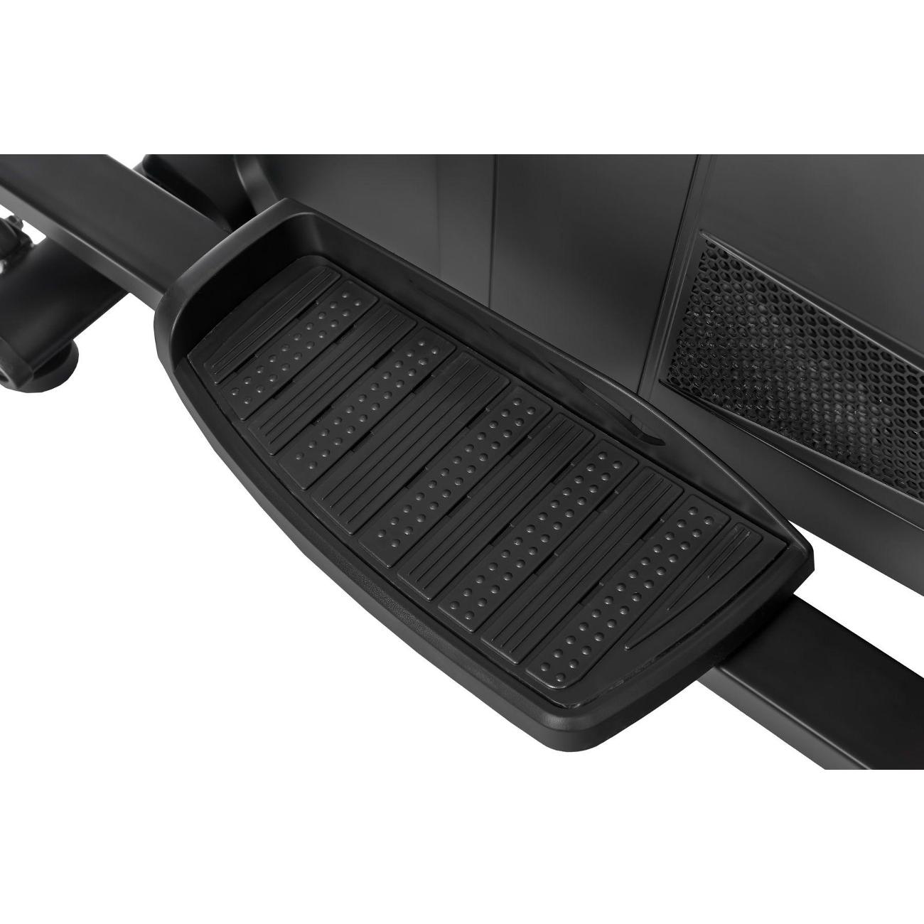 На лицевой панели эллипсоида располагается многофункциональный LCD-дисплей, который отображает сведения о тренировке в режиме реального времени (пульс с помощью сенсорных датчиков, время тренировки, количество затраченных калорий, дистанция). Доступен выбор из 20 тренировочных программ, включая четыре пульсозависимые, пять пользовательских и одну Ватт-программу. Также дисплей позволяет менять уровень нагрузки (24) на любом этапе проведения тренировки, инерционный вес маховика составляет 22 кг.