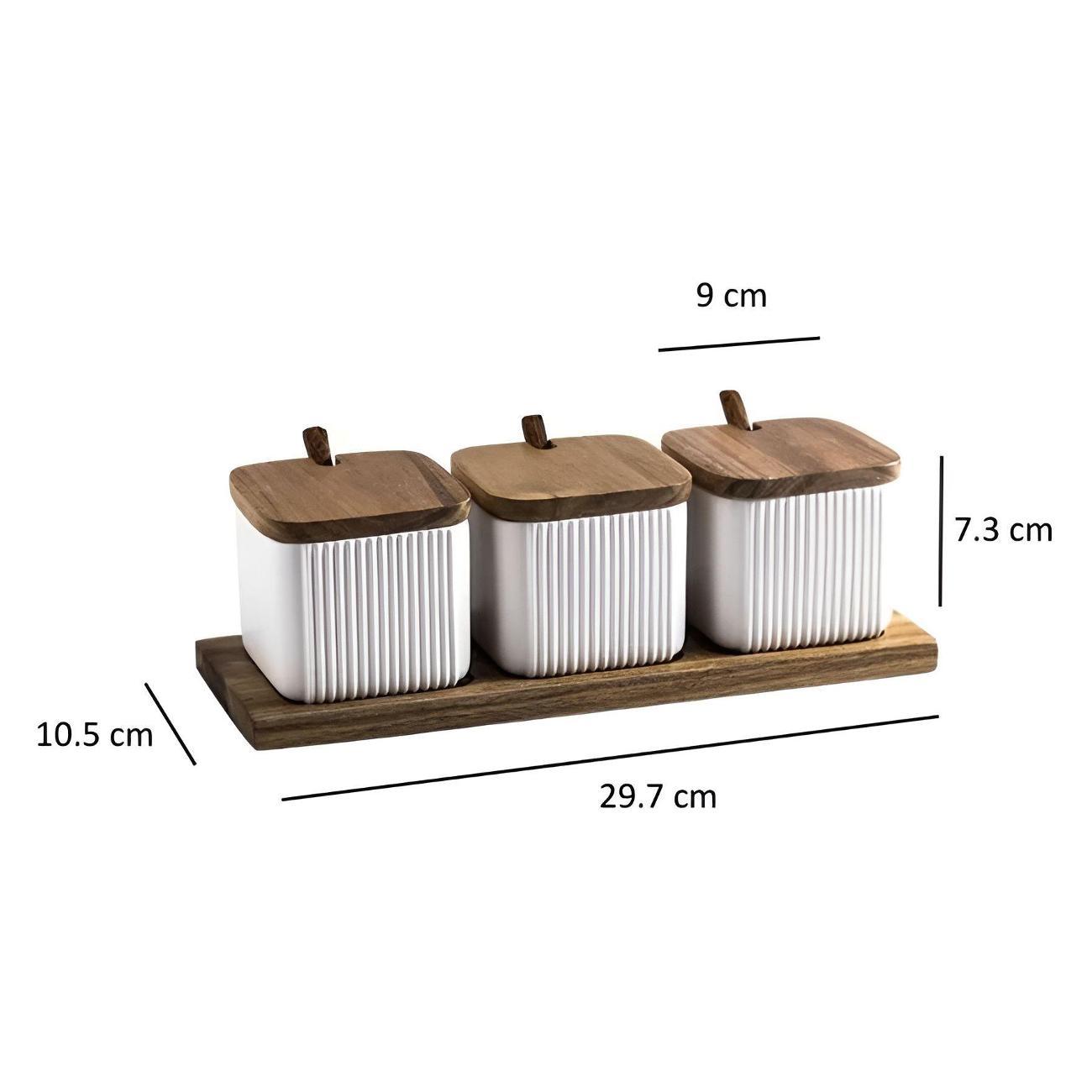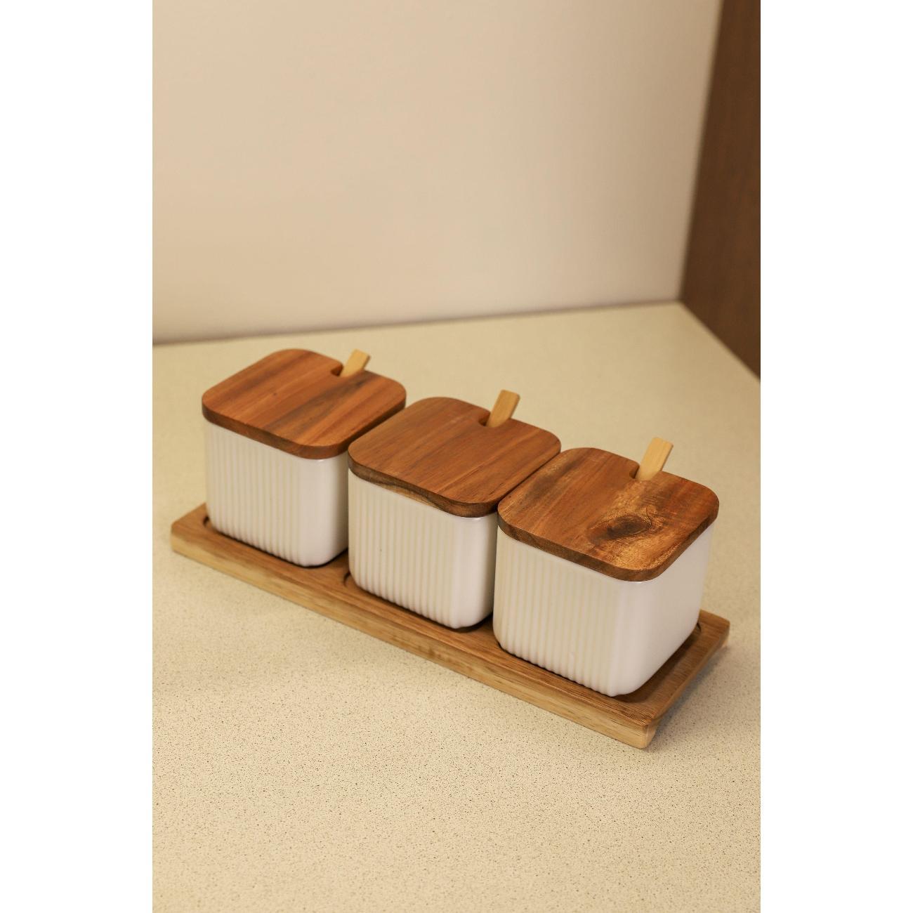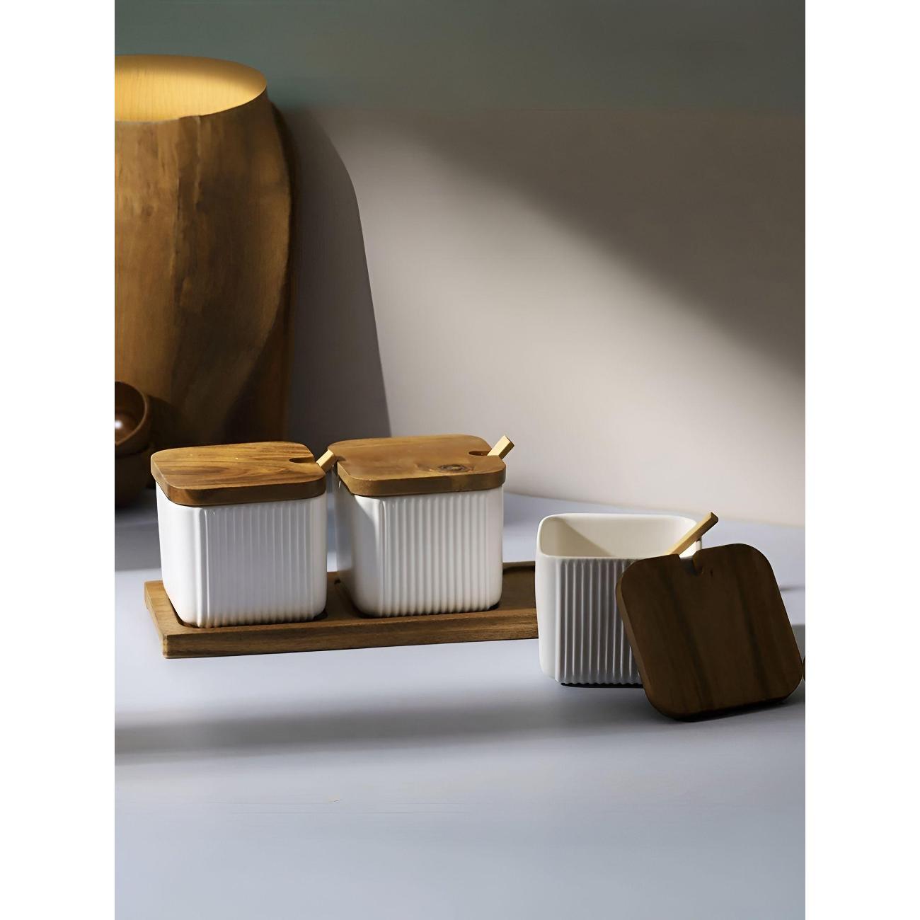 Банки имеют прямоугольную форму и изготовлены из керамики, что обеспечивает их долговечность и удобство использования. Кроме того, крышка банок выполнена из бамбука, что делает ее экологически чистой и безопасной для здоровья.