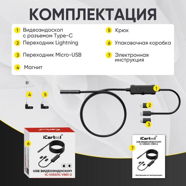 Вы можете купить Эндоскоп iCartool IC-V801-2 в магазинах М.Видео по доступной цене. Эндоскоп iCartool IC-V801-2: подробное описание, фото и отзывы реальных покупателей, характеристики, возможность скачать инструкции и подобрать аксессуары.