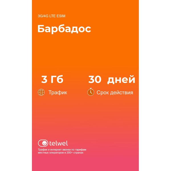 Вы можете купить eSIM Telwel пакет Барбадос 3Гб 30 дней в магазинах М.Видео по доступной цене. eSIM Telwel пакет Барбадос 3Гб 30 дней: подробное описание, фото и отзывы реальных покупателей, характеристики, возможность скачать инструкции и подобрать аксессуары.