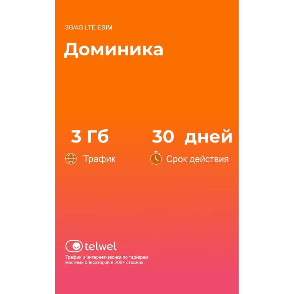 Вы можете купить eSIM Telwel пакет Доминика 3Гб 30 дней в магазинах М.Видео по доступной цене. eSIM Telwel пакет Доминика 3Гб 30 дней: подробное описание, фото и отзывы реальных покупателей, характеристики, возможность скачать инструкции и подобрать аксессуары.