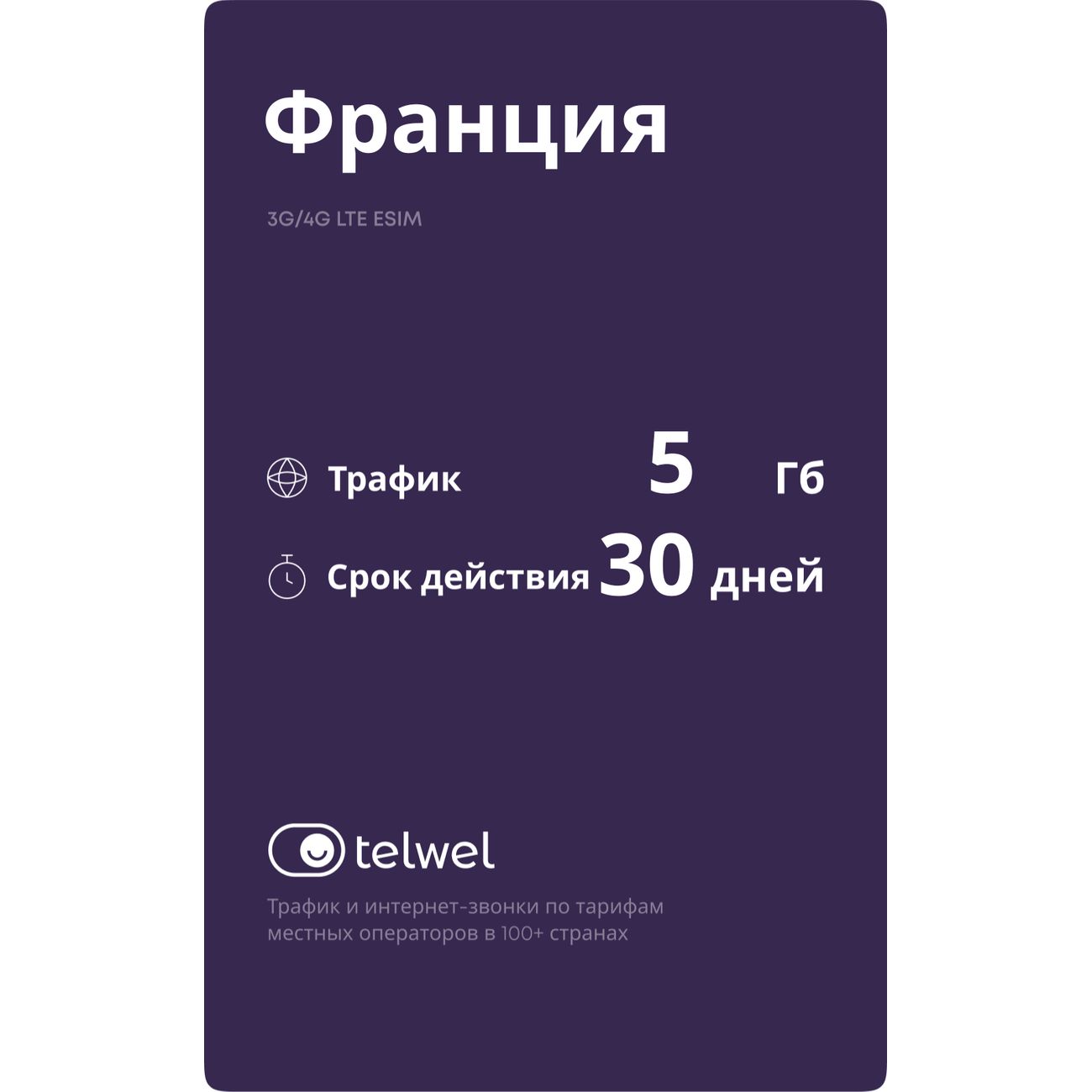 Вы можете купить eSIM Telwel пакет Франция 5Гб 30 дней в магазинах М.Видео по доступной цене. eSIM Telwel пакет Франция 5Гб 30 дней: подробное описание, фото и отзывы реальных покупателей, характеристики, возможность скачать инструкции и подобрать аксессуары.