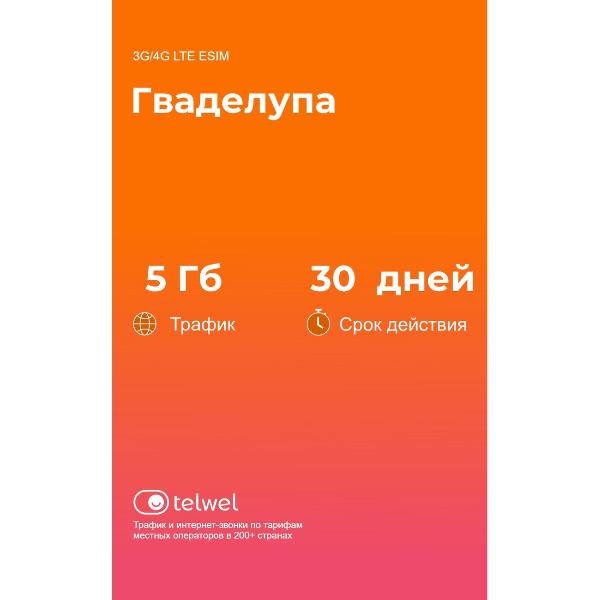 Вы можете купить eSIM Telwel пакет Гваделупа 5Гб 30 дней в магазинах М.Видео по доступной цене. eSIM Telwel пакет Гваделупа 5Гб 30 дней: подробное описание, фото и отзывы реальных покупателей, характеристики, возможность скачать инструкции и подобрать аксессуары.