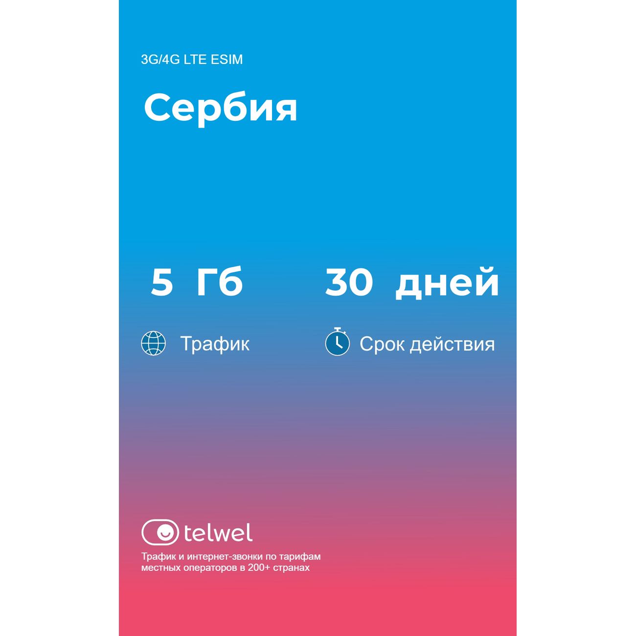 Вы можете купить eSIM Telwel пакет Сербия 5Гб 30 дней в магазинах М.Видео по доступной цене. eSIM Telwel пакет Сербия 5Гб 30 дней: подробное описание, фото и отзывы реальных покупателей, характеристики, возможность скачать инструкции и подобрать аксессуары.