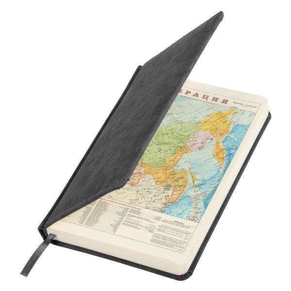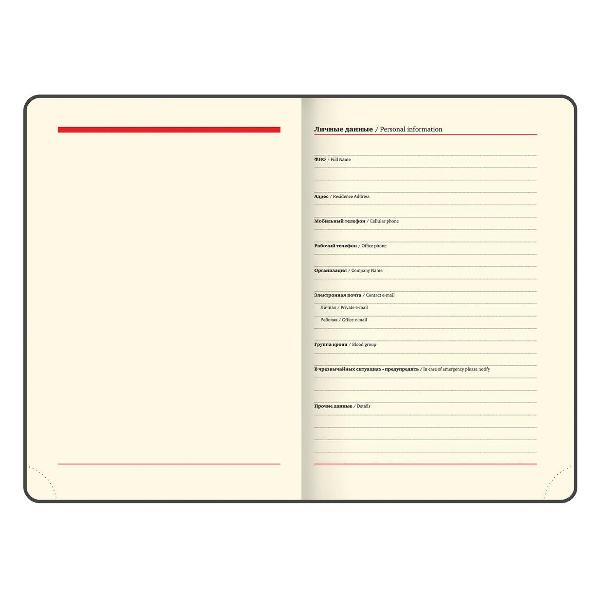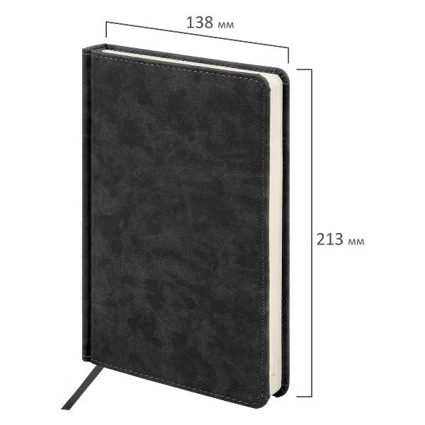 Внутренний блок включает 160 листов тонированной бумаги плотностью 70 г/м2. Каждая страничка имеет перфорированный угол. Благодаря стандартному формату А5 (138х213 мм) ежедневник удобно использовать как в офисе, так и на выездных деловых встречах. Твердая обложка стилизована под фактурную кожу. Подходит для горячего тиснения.