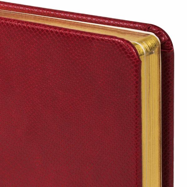 Твердая обложка, стилизованная под кожу рептилии, подходит для горячего тиснения. Срез ежедневника фольгирован под "золото", что придает ему особый шарм. Дополнением является закладка-ляссе, с помощью которой при необходимости можно быстро открыть ежедневник на нужной странице. Помимо прочего ежедневник снабжен обширным справочным материалом. В конце ежедневника есть 5 страниц для записей и заметок.