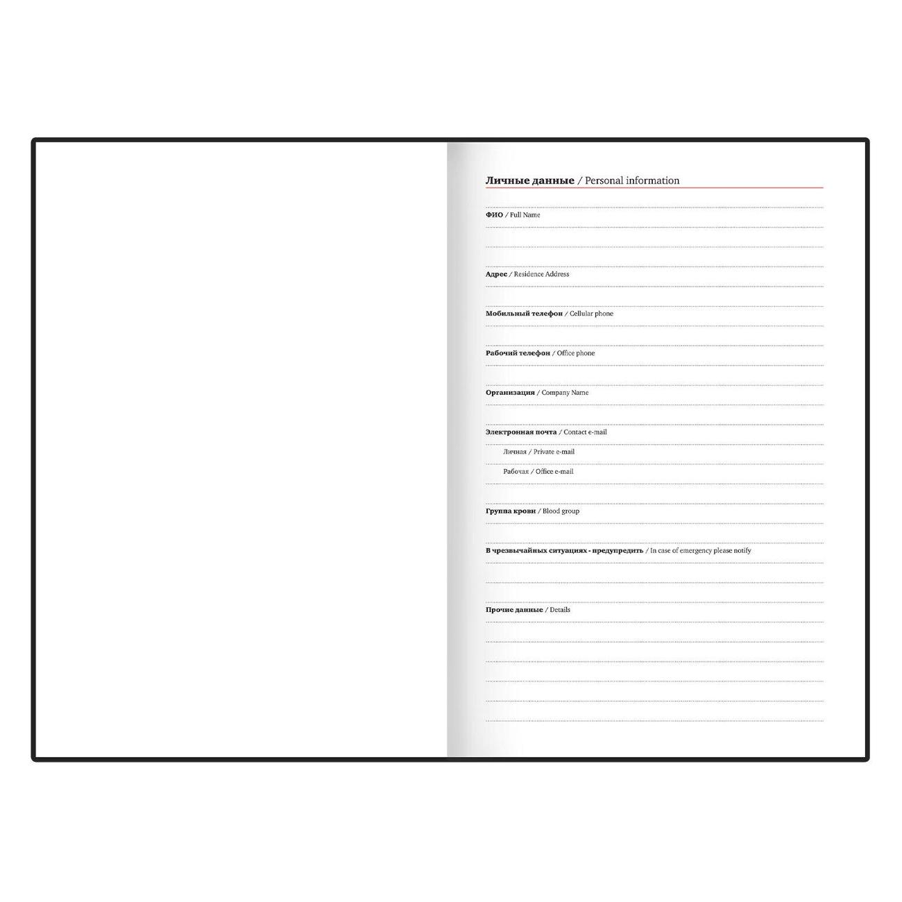 Отличительная особенность — наличие полей для проставления дат. Они не пропечатаны, что позволяет владельцу выделять под каждый день необходимое количество листов и записывать важные сведения. В конце ежедневника предусмотрены 8 страниц для дополнительных записей и заметок.