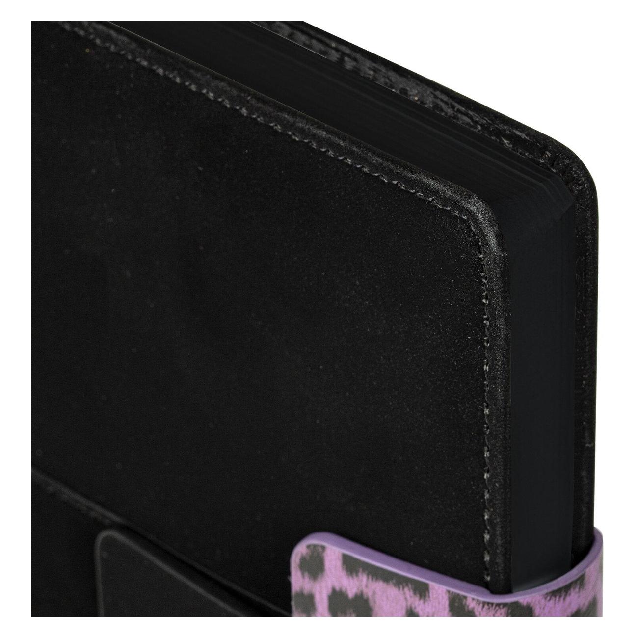 Твёрдая обложка подходит для горячего тиснения. Она фиксируется магнитной застёжкой, поэтому ежедневник не откроется в сумке или портфеле, а страницы не помнутся. Уголки ежедневника закруглены. Анималистичный принт застёжки придаёт изделию особый шарм. Срез и форзац ежедневника окрашены в цвет обложки.